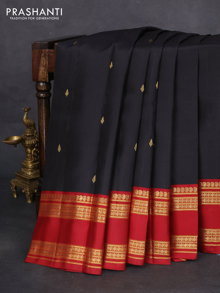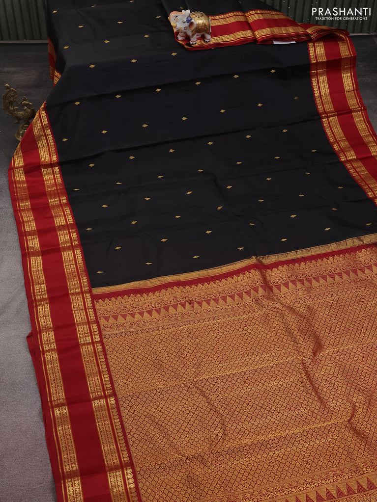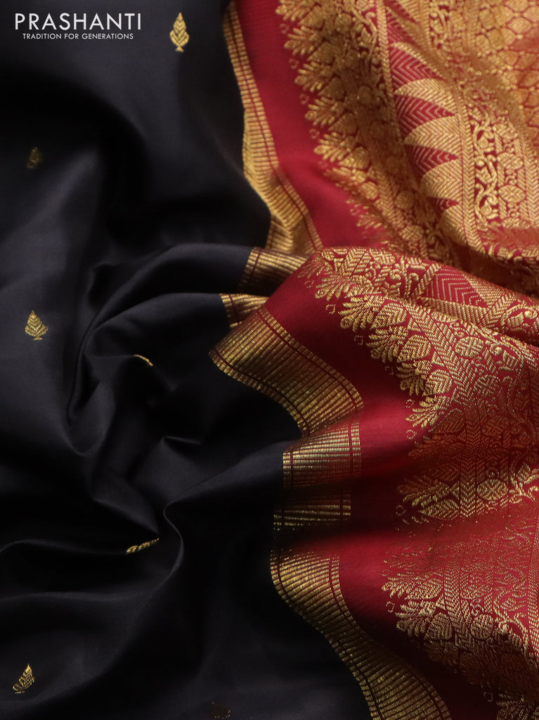 Pure kanchipuram silk saree black and maroon with zari woven buttas and rettapet zari woven border