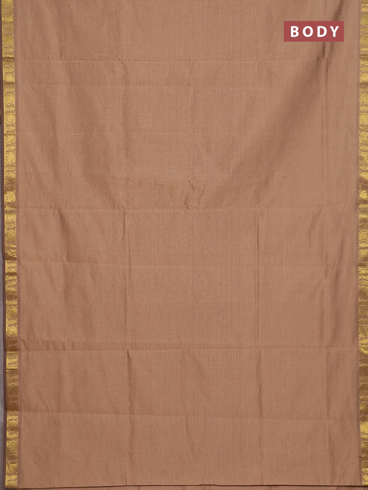 10 yards Poly cotton saree beige and maroon with plain body and zari woven border
