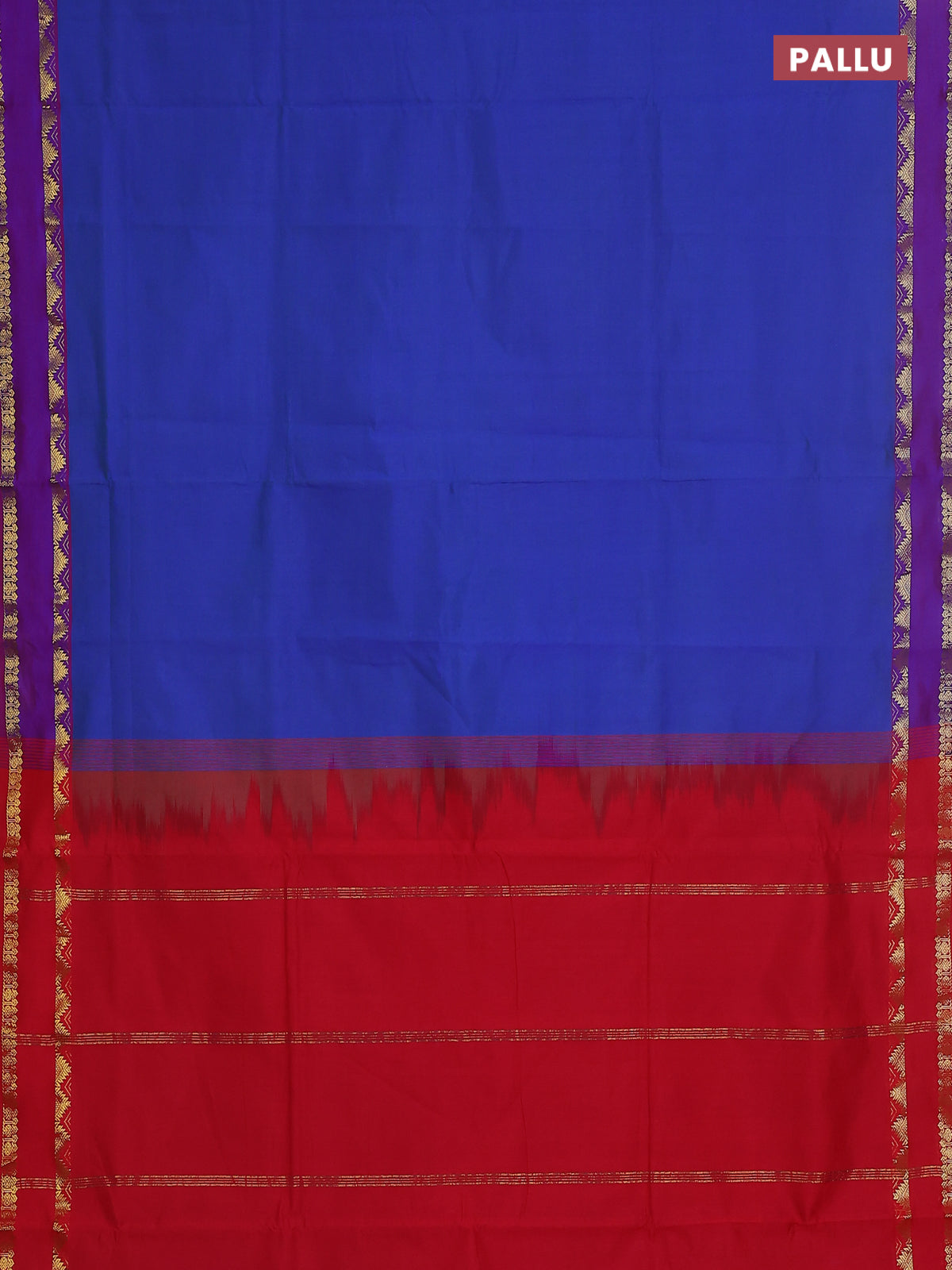 10 yards Poly cotton saree dual shade of bluish green and red with plain body and rettapet zari woven border