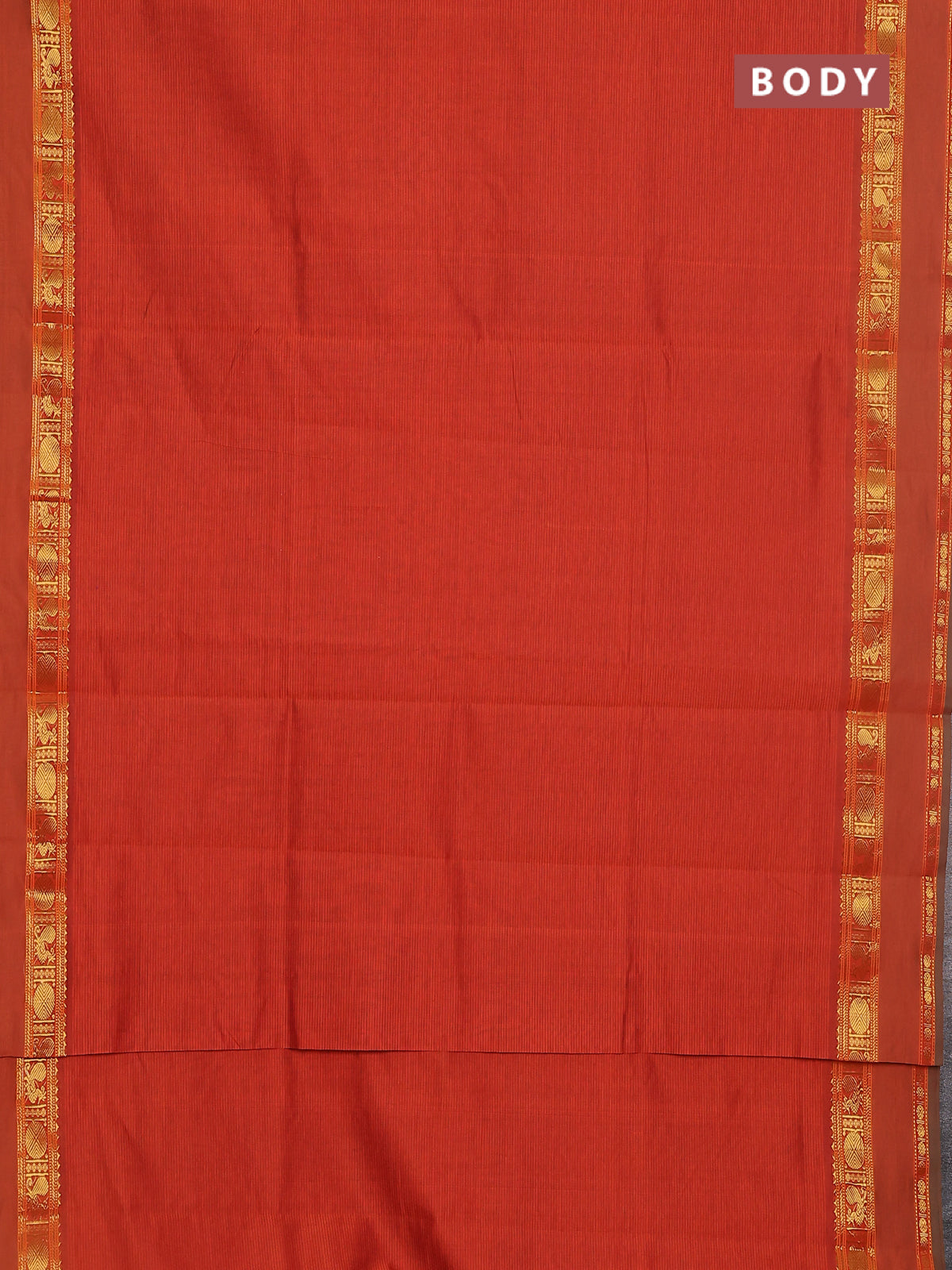 10 yards Poly cotton saree orange and violet with plain body and rettapet zari woven border