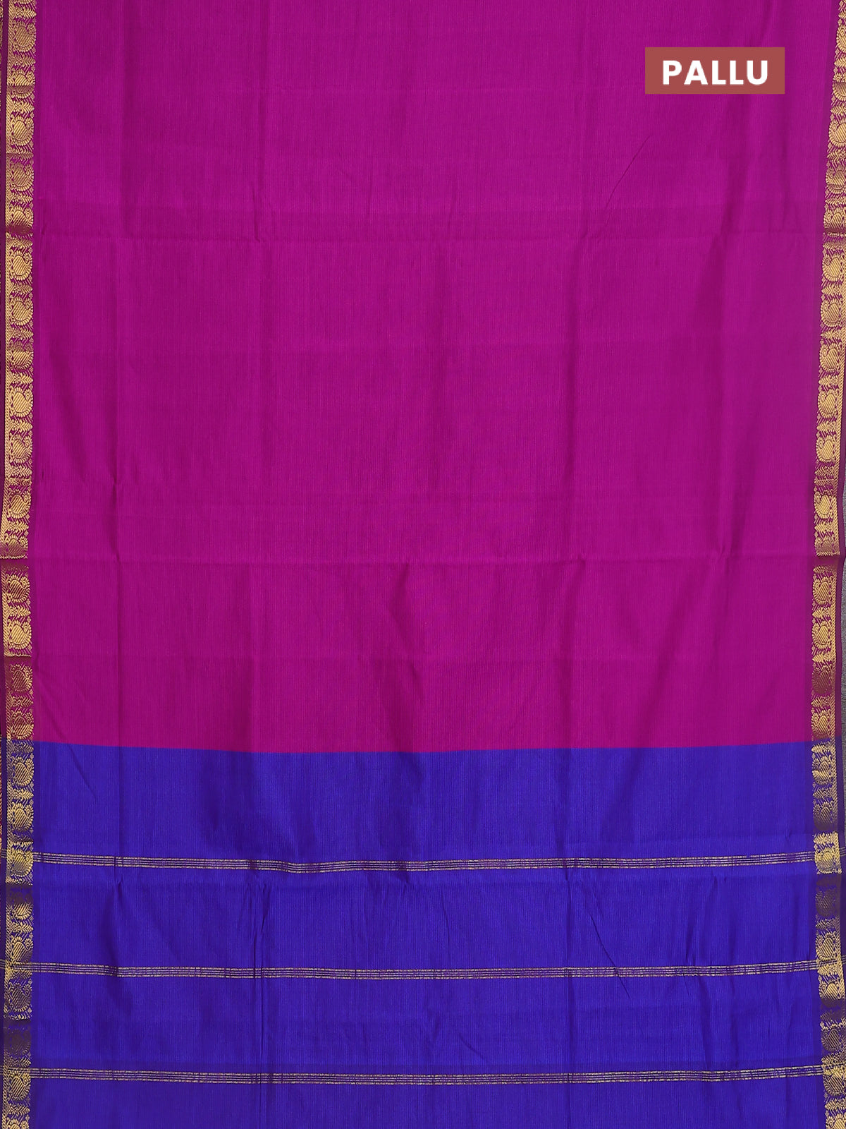 10 yards Poly cotton saree purple and blue with plain body and zari woven border