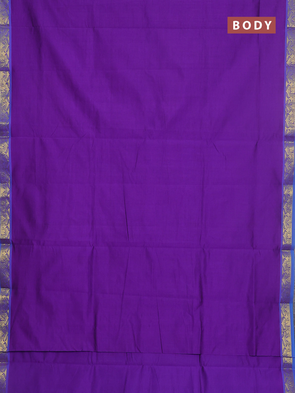 10 yards Poly cotton saree violet and cs blue with plain body and zari woven border