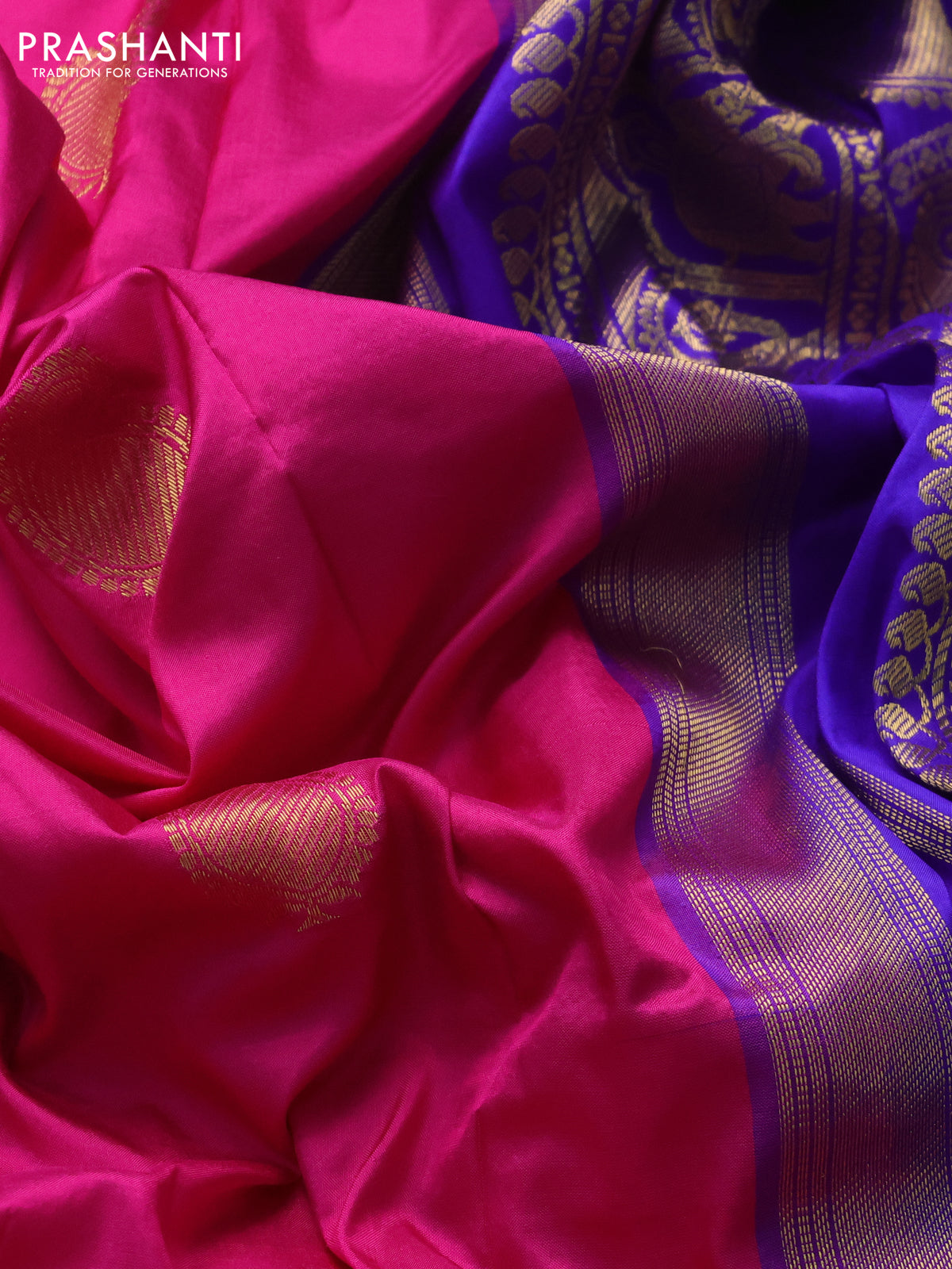 10 Yards silk saree pink and blue with annam & paisley zari woven buttas and zari woven border