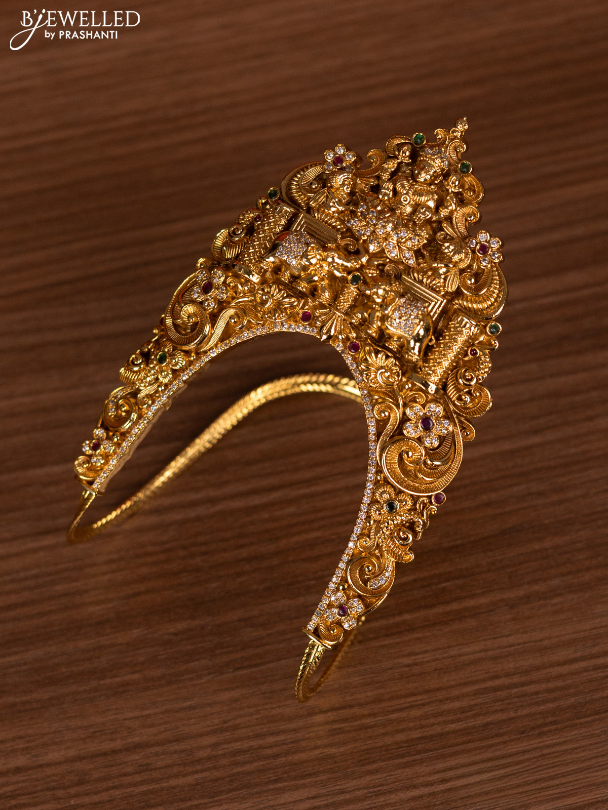Antique bridal set lakshmi design with kemp cz stones and pearl & golden beads hanging