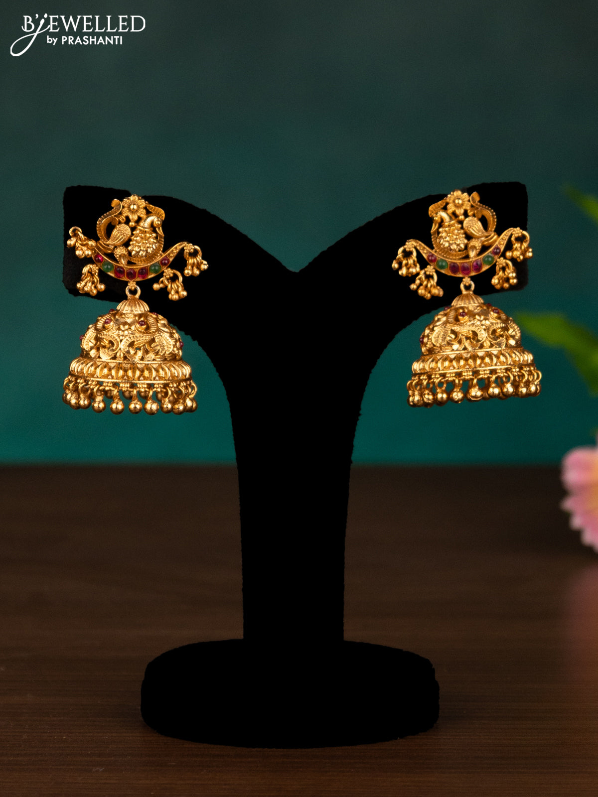 Antique haaram peacock design with kemp stones and golden beads hanging