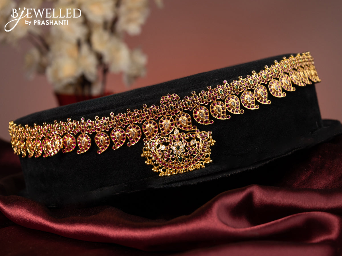 Antique hip chain manga design with kemp & kundan stones and golden beads hanging