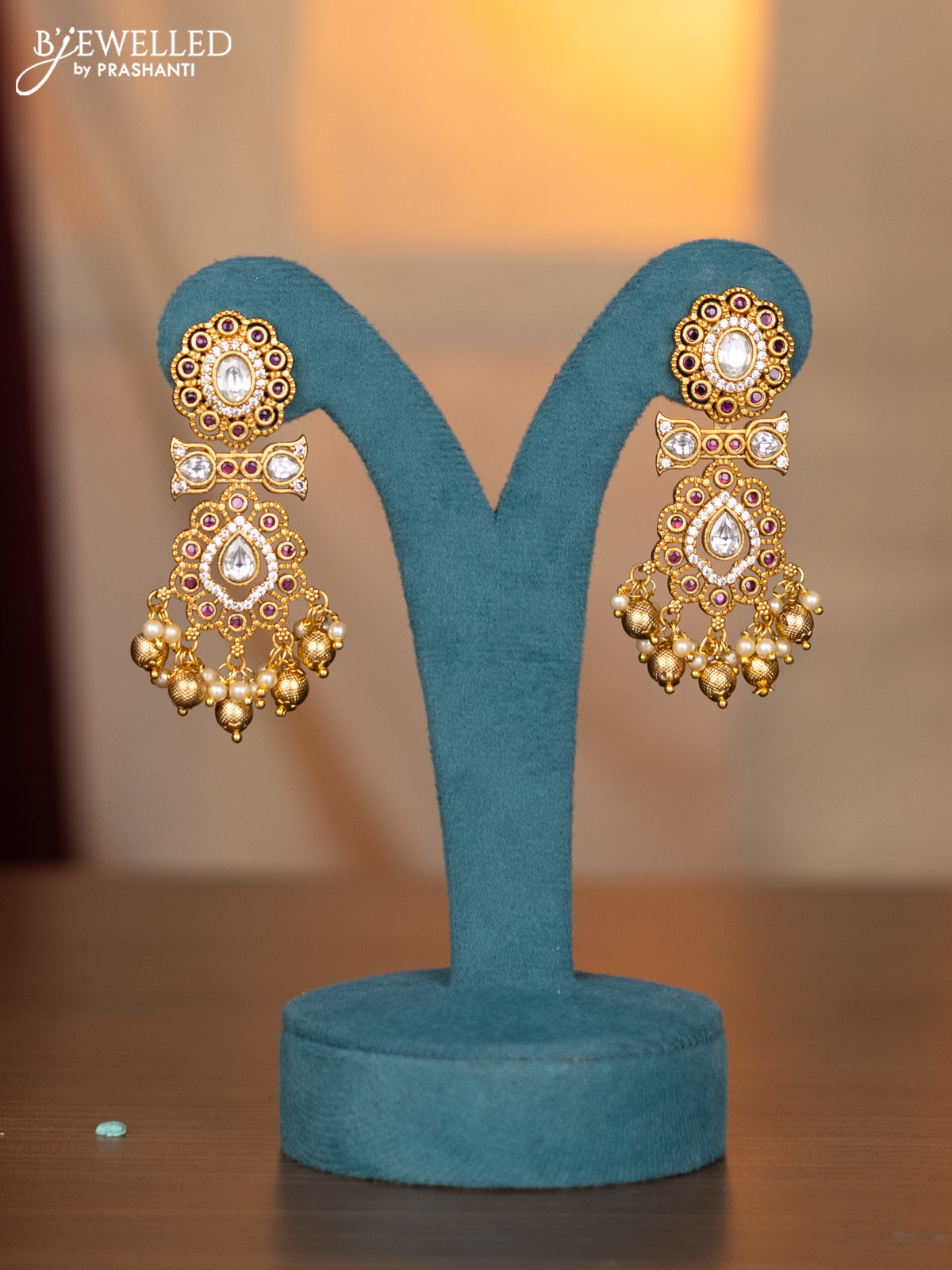 Antique necklace with pink kemp & cz stones and pearl hangings