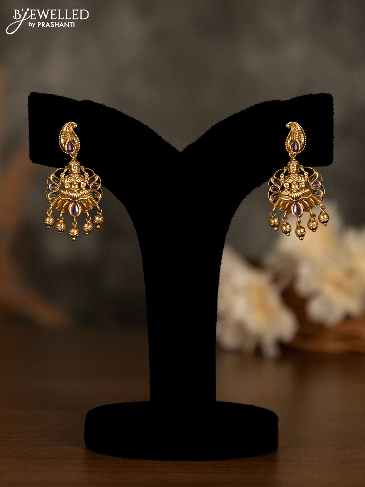 Antique pendant set lakshmi design with kemp & cz stones and golden beads hanging