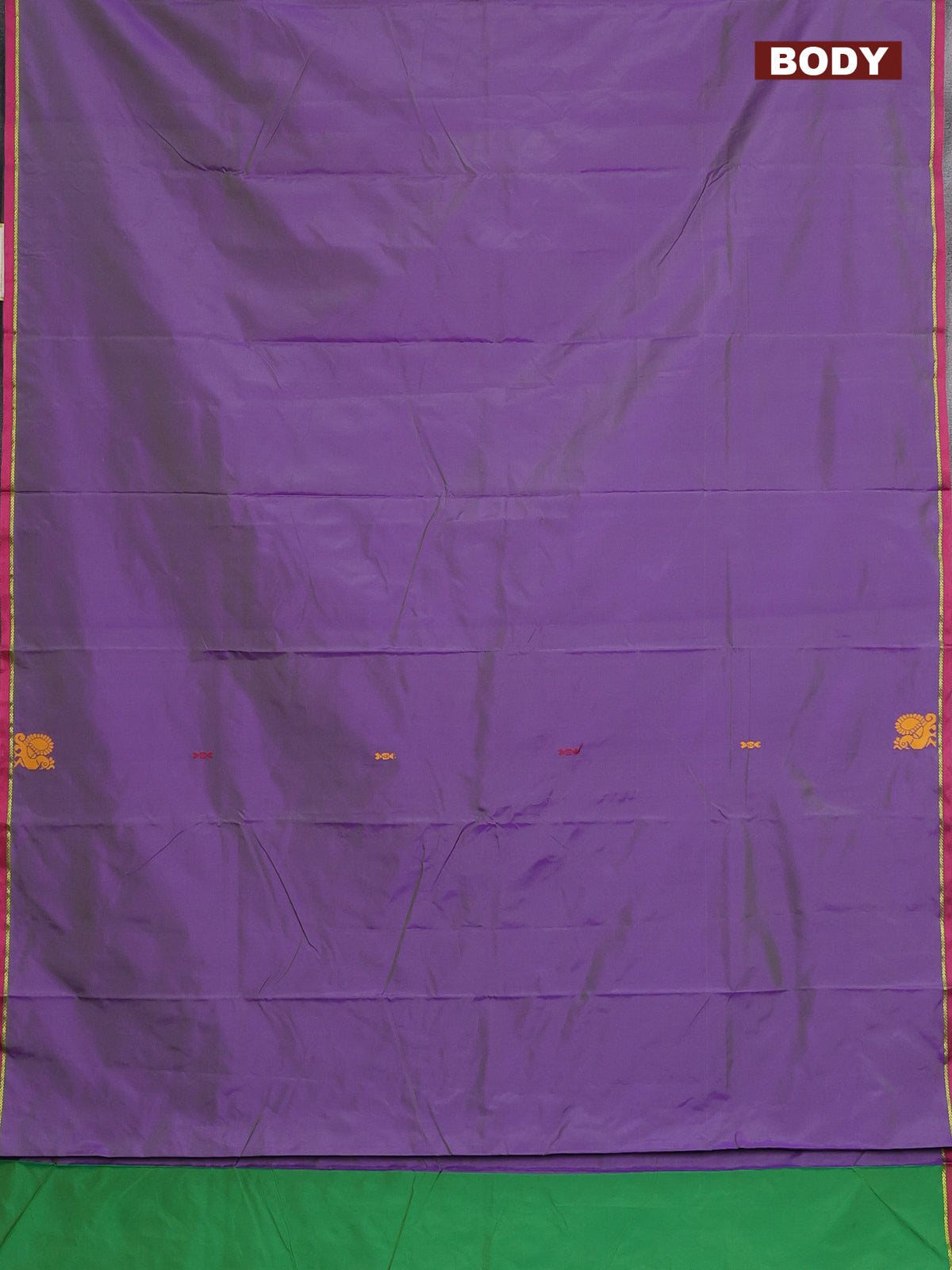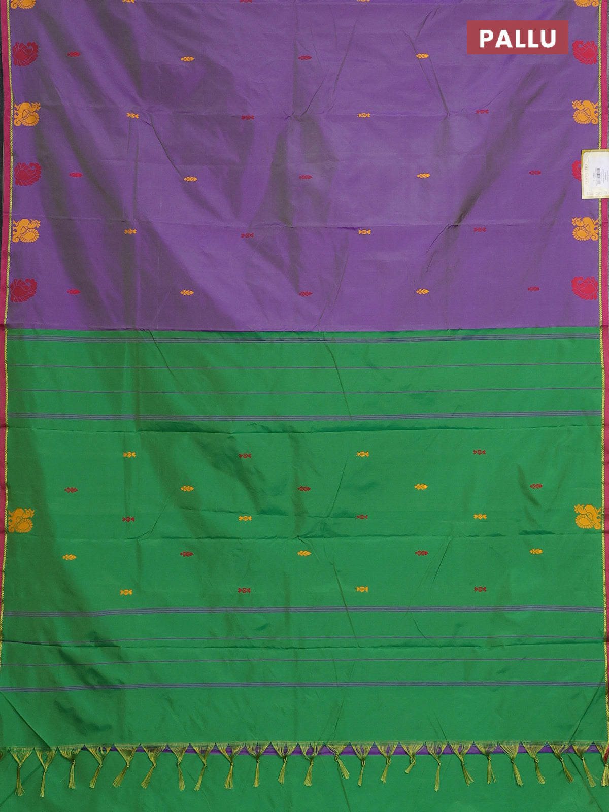 Arani semi silk saree dual shade of greenish violet and green with thread woven buttas and thread woven butta border