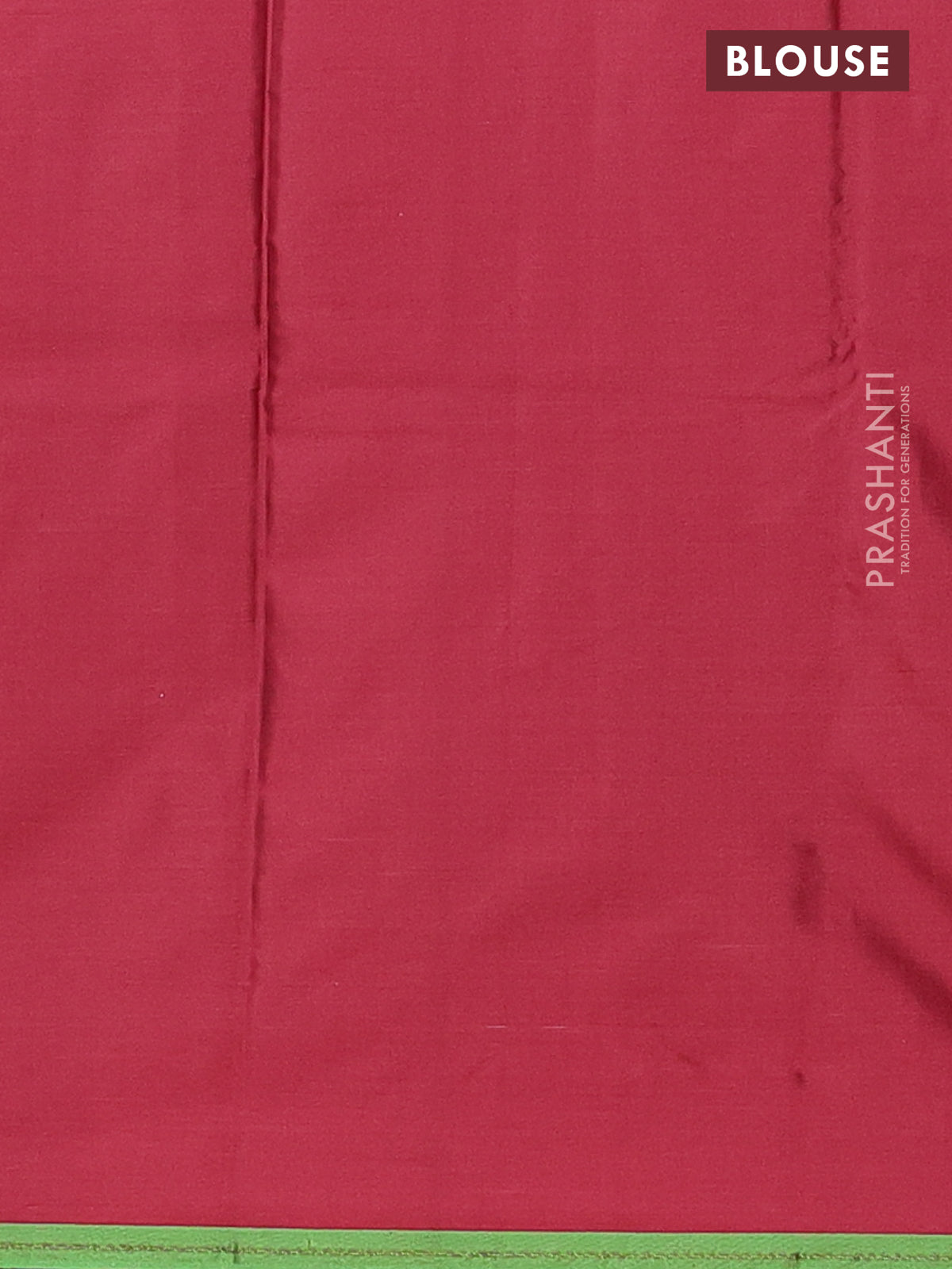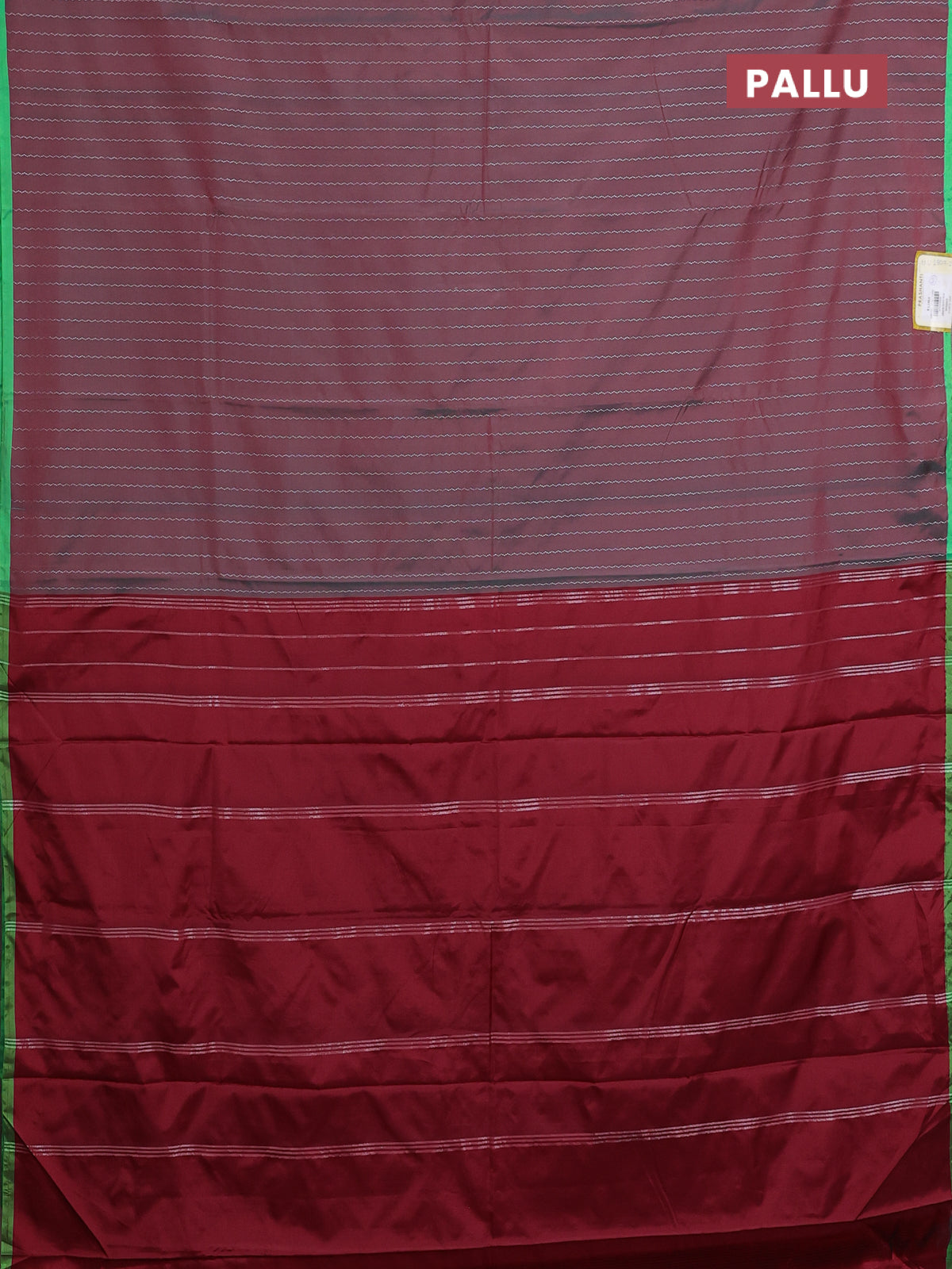 Arani semi silk saree dual shade of maroon and light green with allover silver zari weaves and piping border