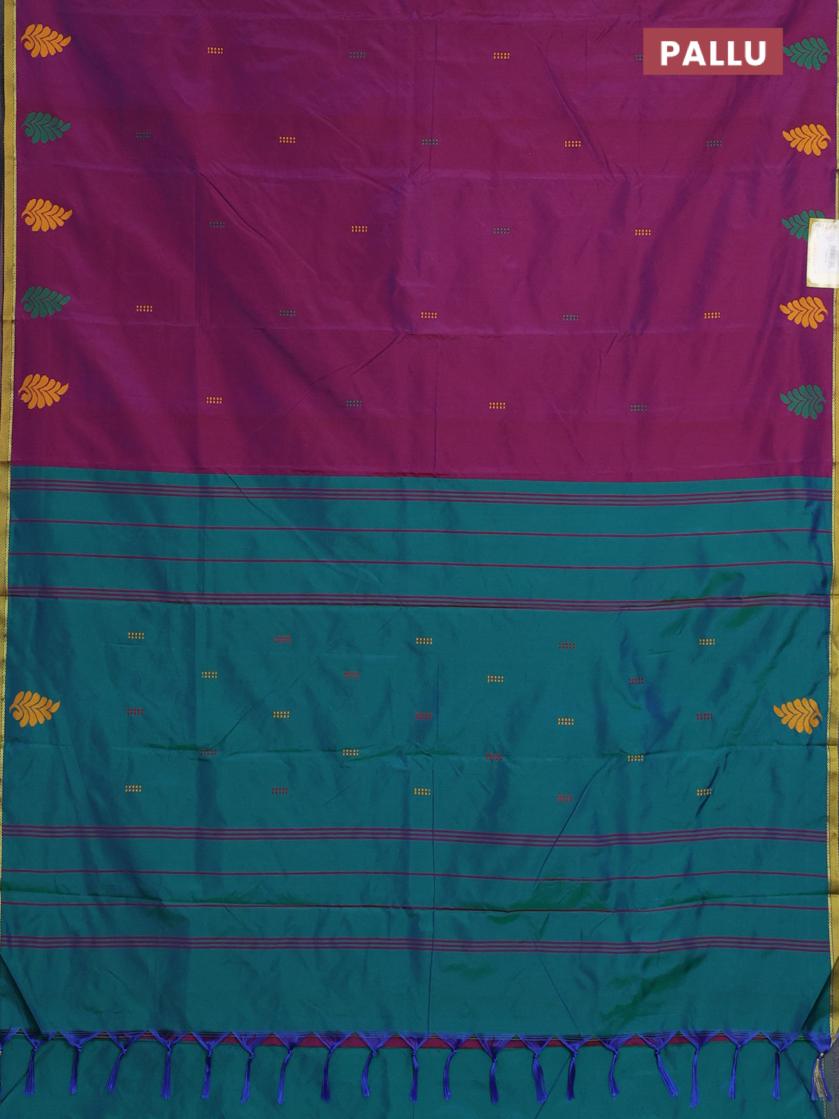 Arani semi silk saree dual shade of maroonish purple and green with thread woven buttas and piping border