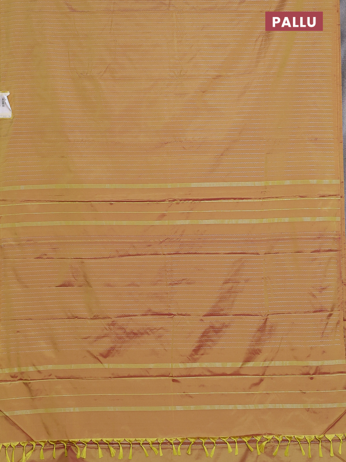 Arani semi silk saree dual shade of mustard with allover silver zari weaves in borderless style
