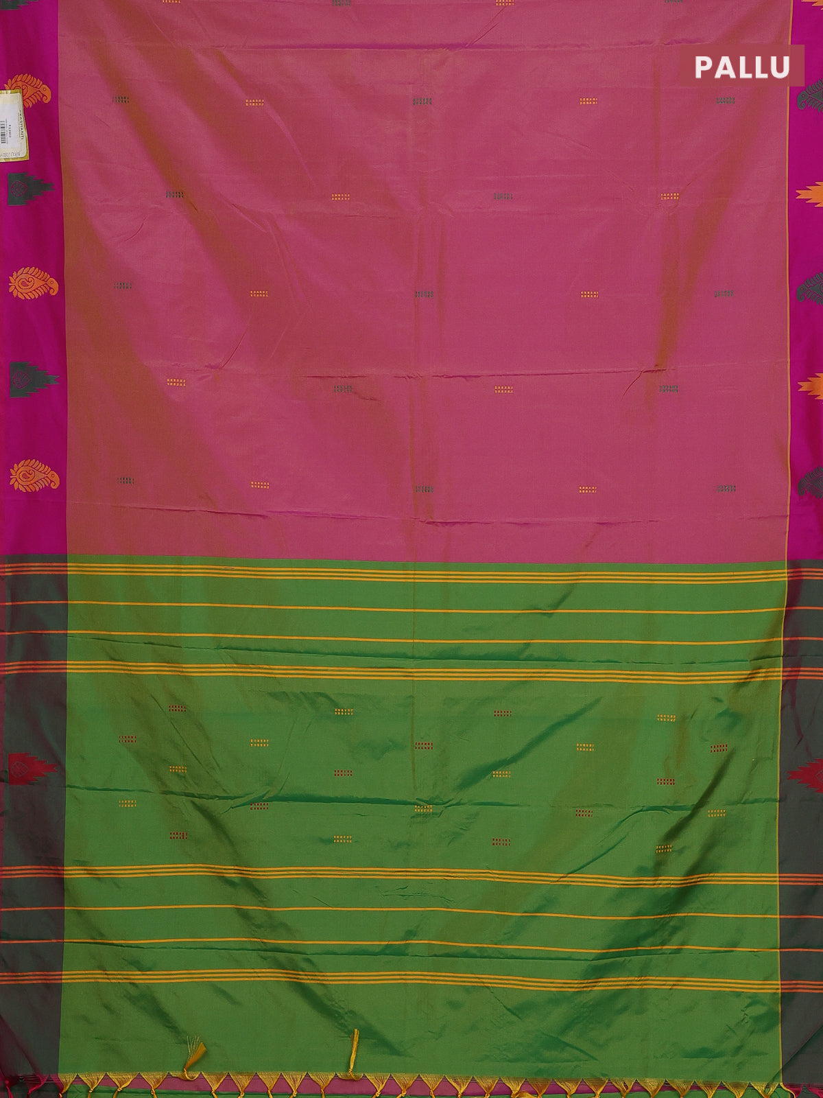 Arani semi silk saree dual shade of pink and dual shade of green with thread woven buttas and thread woven butta border