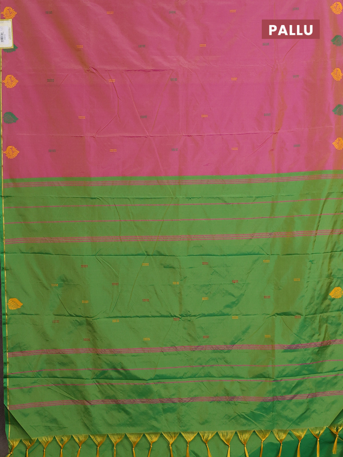 Arani semi silk saree dual shade of pink and green with thread woven buttas and thread woven butta border