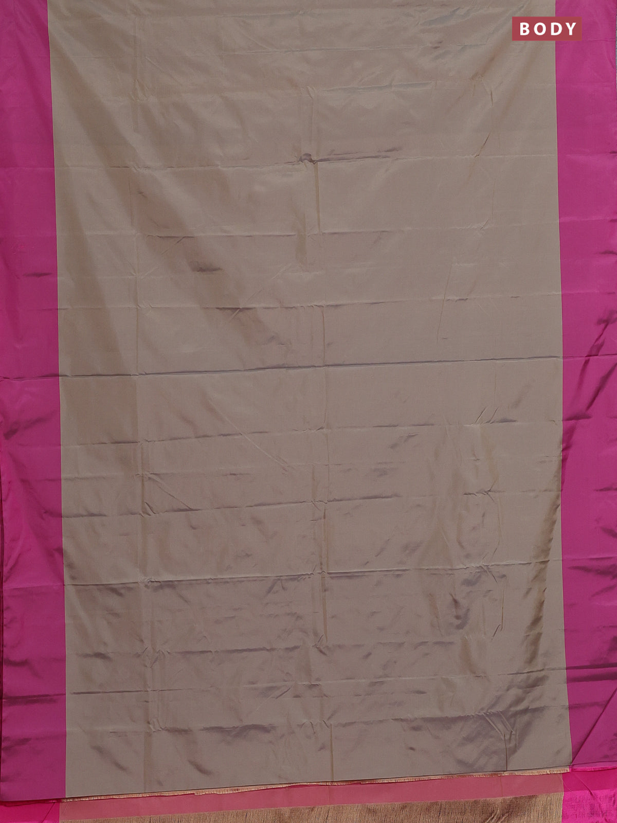 Arani semi silk saree grey shade and dual shade of pink with copper zari woven buttas and copper zari woven butta border