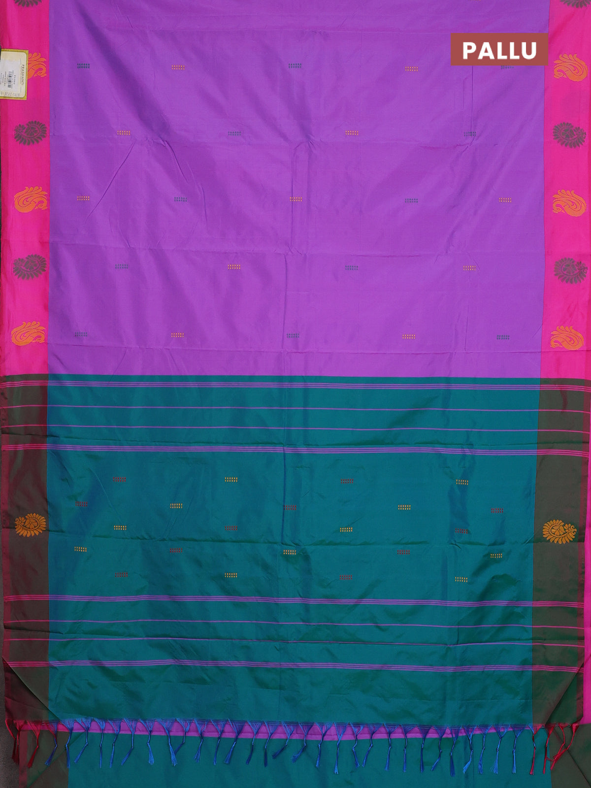 Arani semi silk saree lavender and dual shade of green with thread woven buttas and thread woven butta border