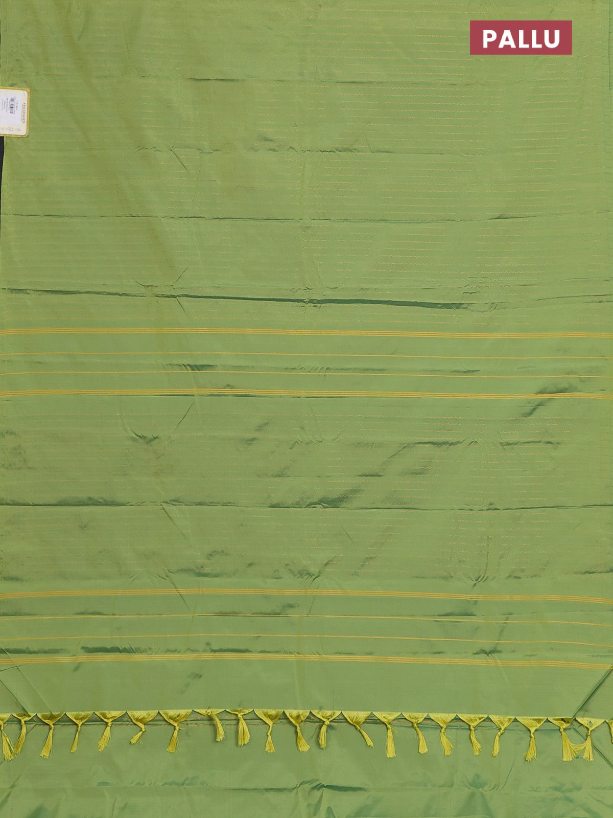 Arani semi silk saree light green with allover copper zari weaves in borderless style