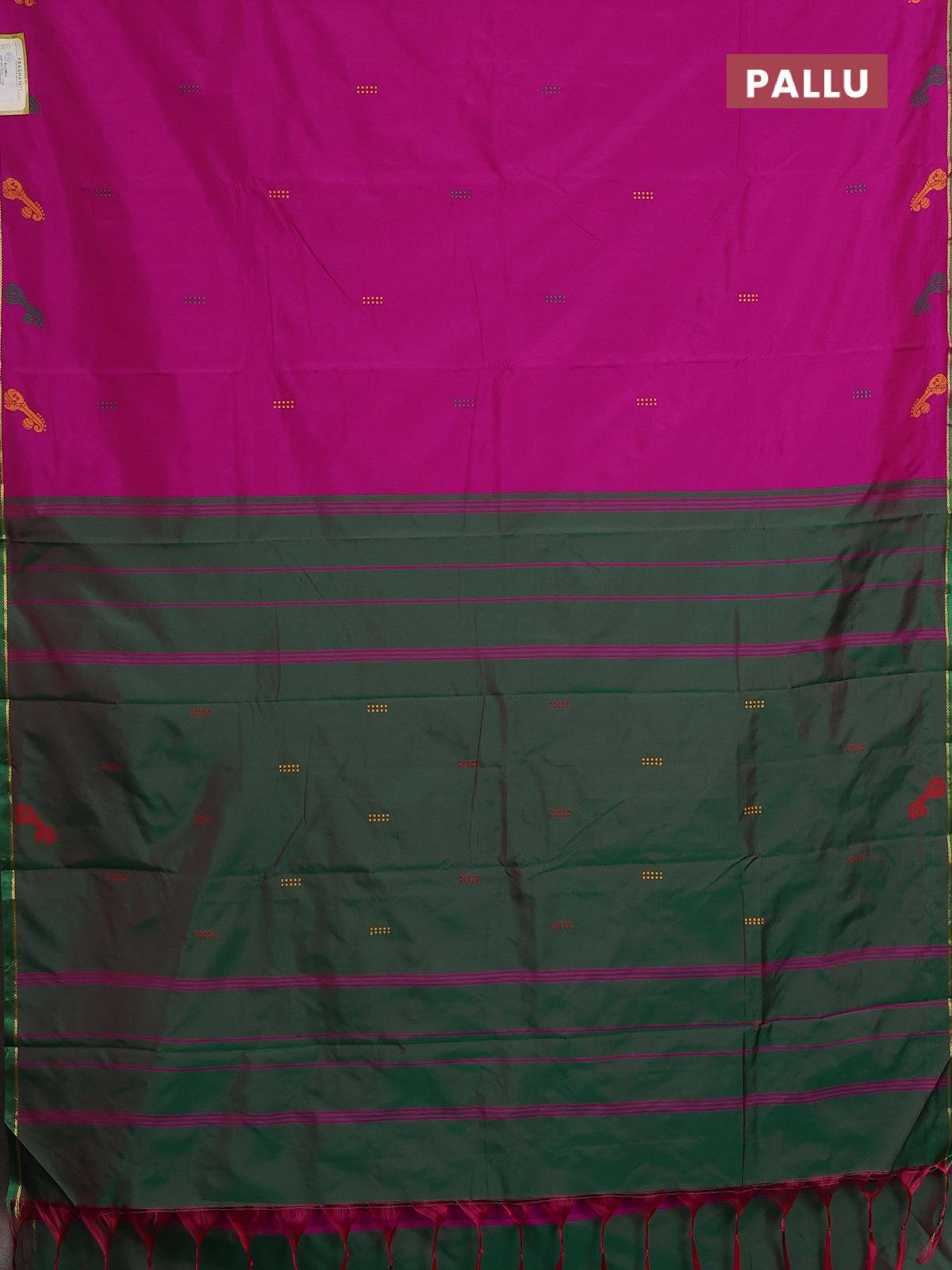 Arani semi silk saree magenat pink and dual shade of green with thread woven buttas and thread woven butta border