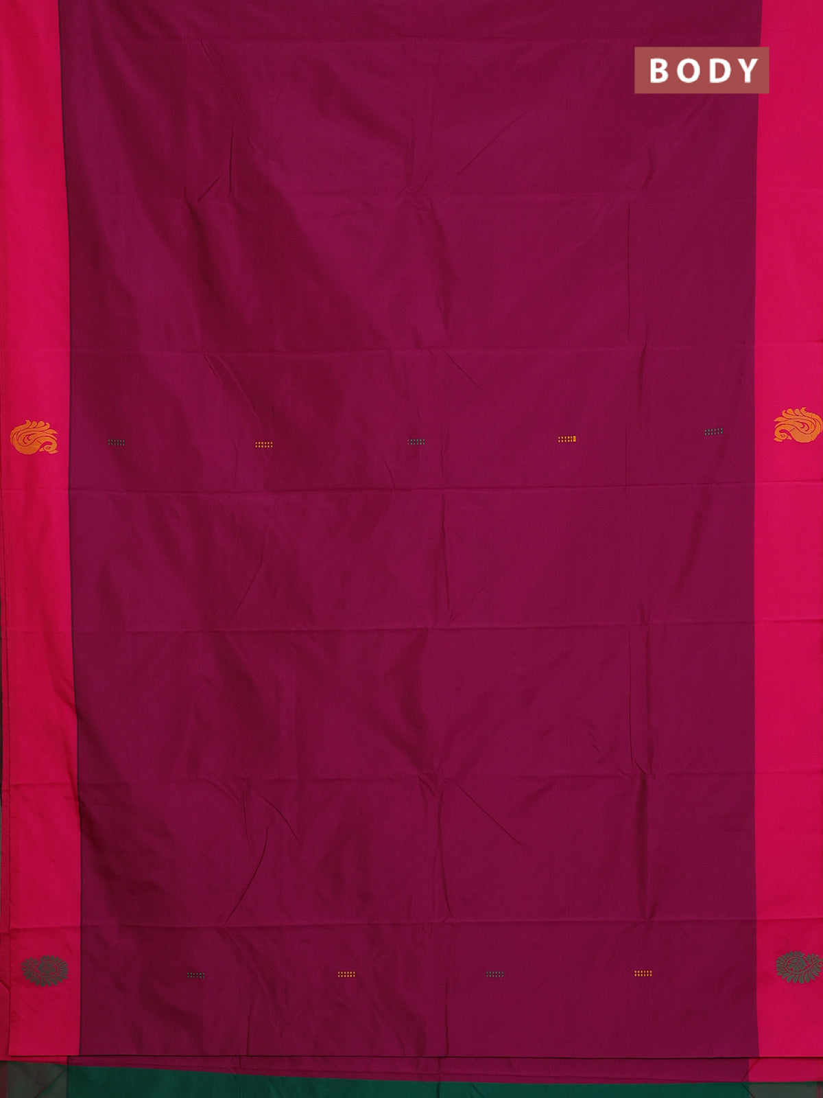 Arani semi silk saree magenta pink and dual shade of green with thread woven buttas and thread woven butta border