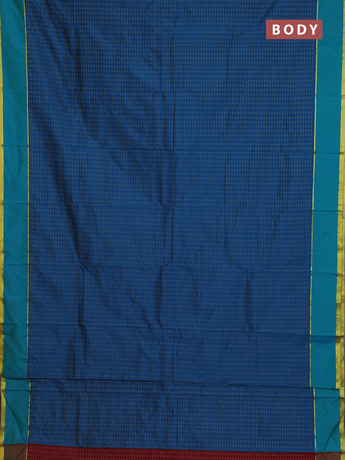 Arani semi silk saree peacock blue and maroon with allover thread weaves and rettapet zari woven border`