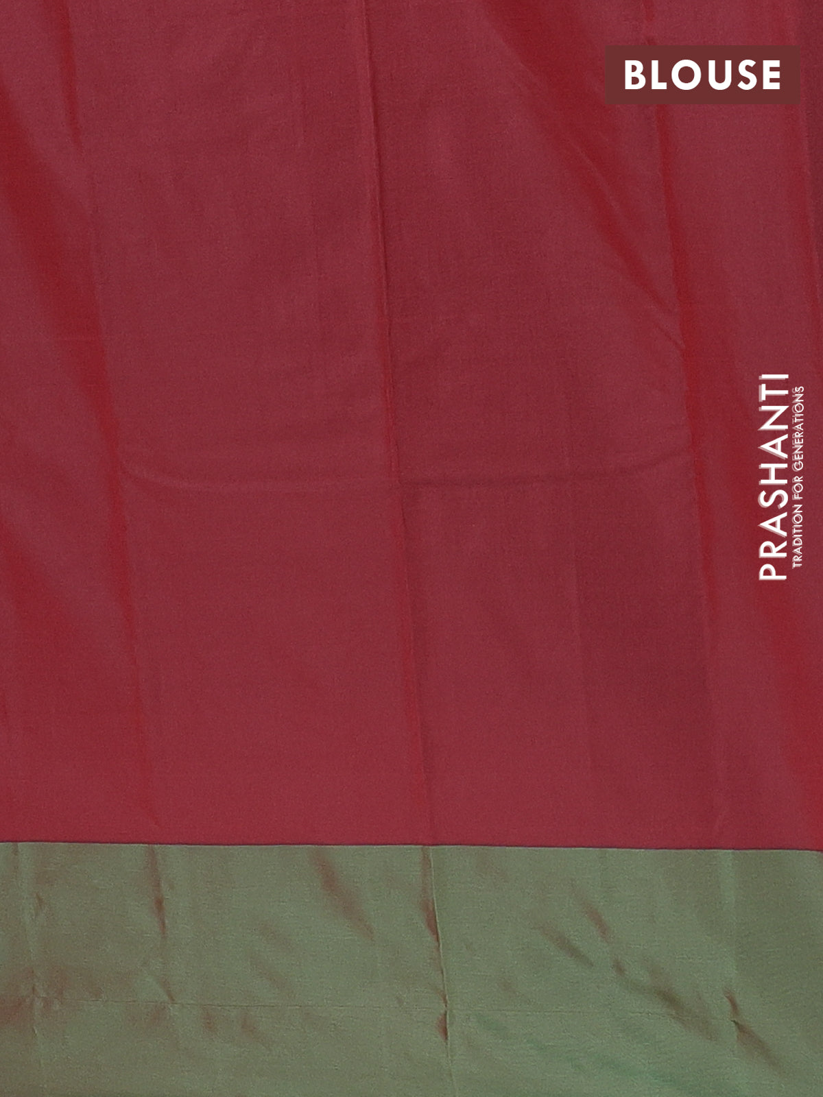 Arani semi silk saree peacock green and green with copper zari woven buttas and copper zari woven butta border