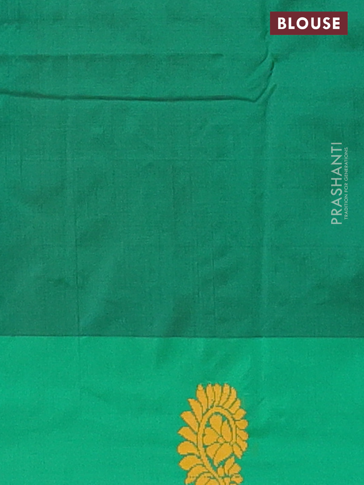 Arani semi silk saree rust shade and green with thread woven buttas and thread woven butta border
