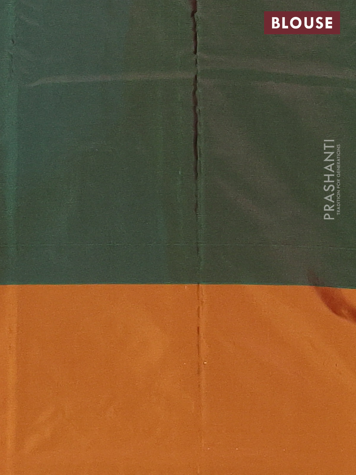 Arani semi silk saree teal blue shade and dual shade of mustard with zari woven buttas and paisley zari woven butta border