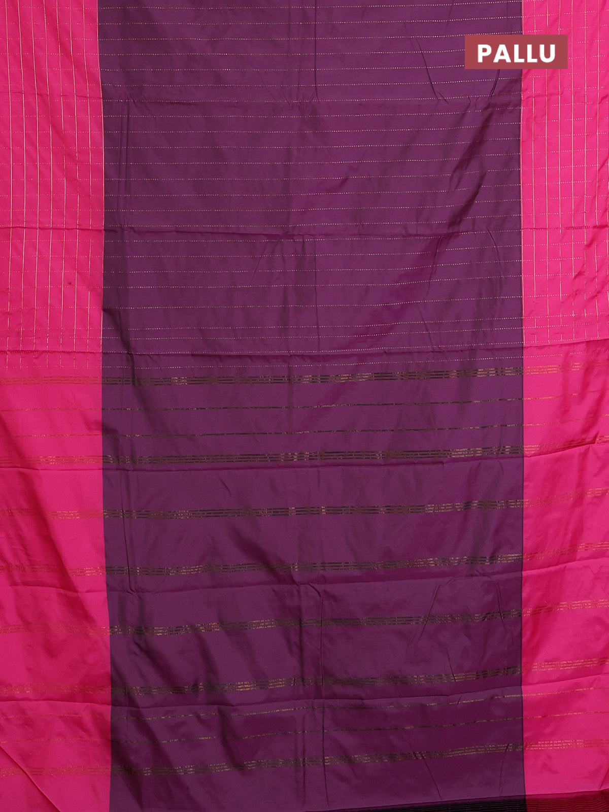 Arani semi silk saree wine shade and pink with allover copper zari weaves and zari checked border