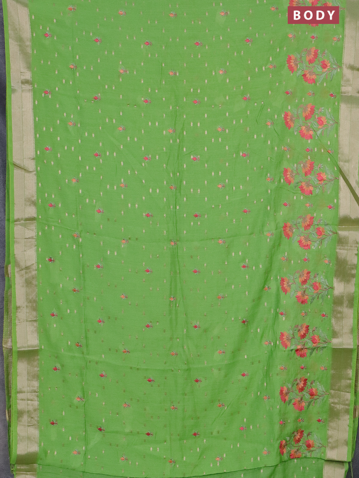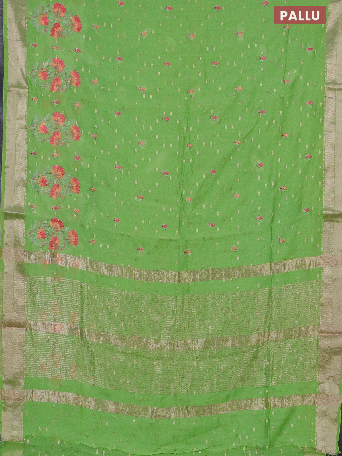 Assam silk saree light green with zari buttas & embroidery work and zari woven border