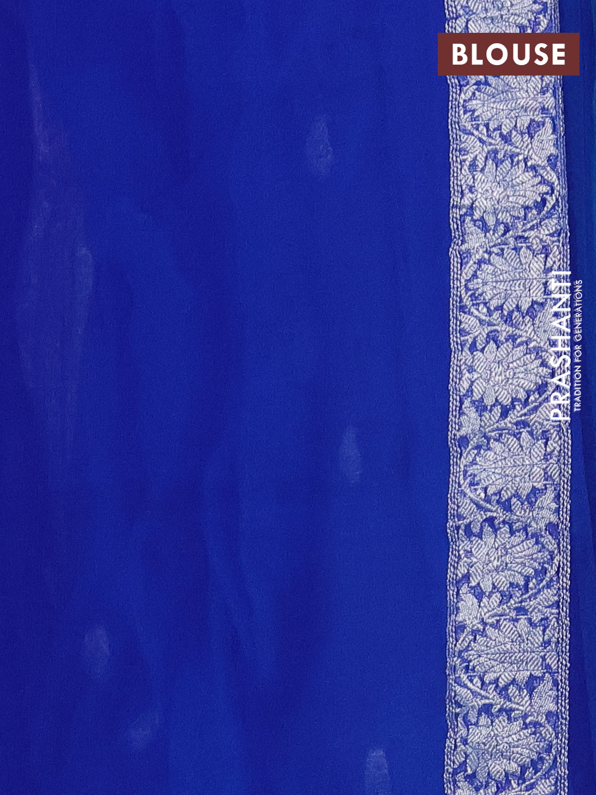 Banarasi chiffon silk saree cs blue and blue with paisley silver zari woven buttas and floral silver zari woven border