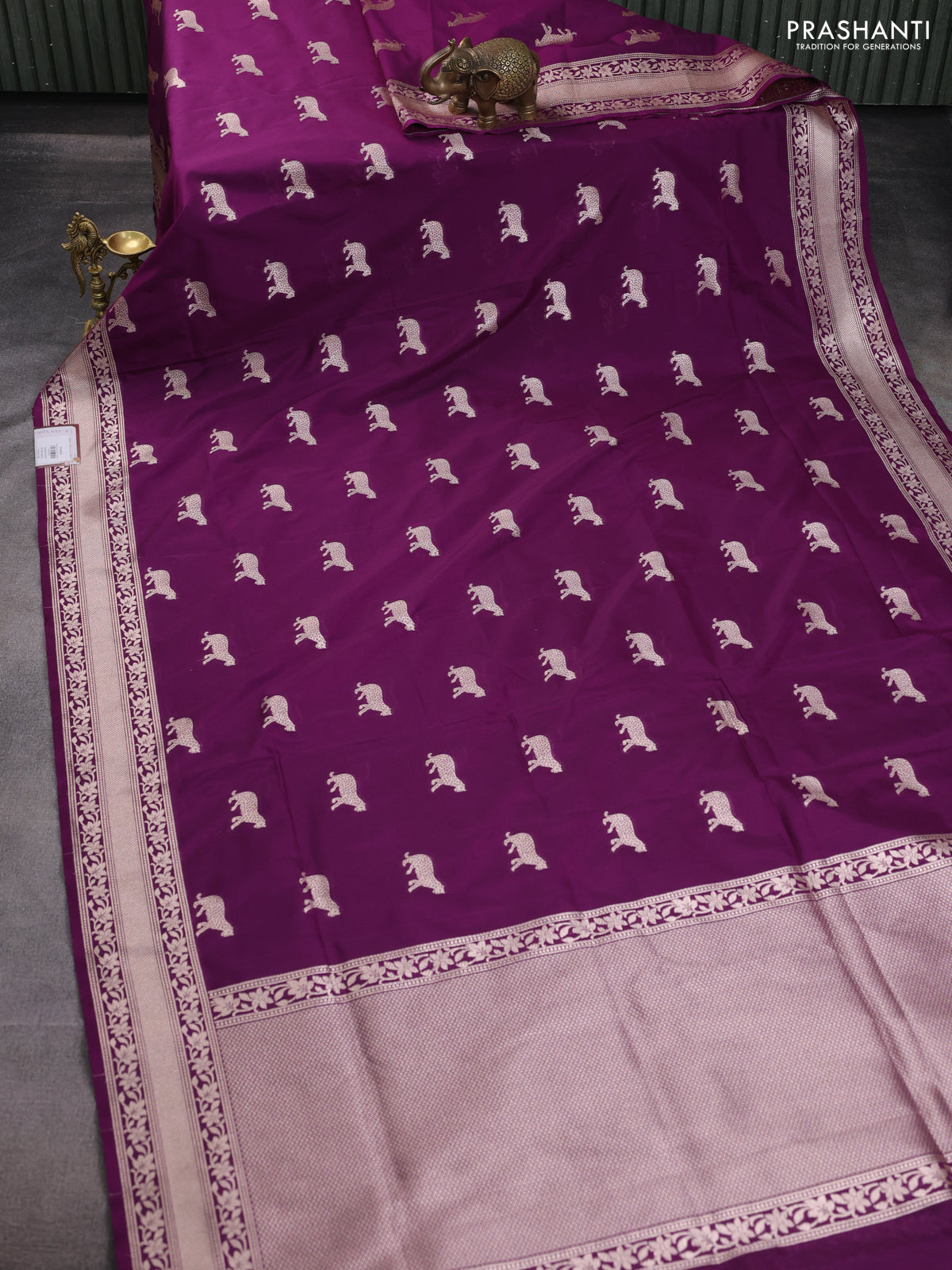 Banarasi semi katan saree deep purple with zari woven buttas and zari woven border