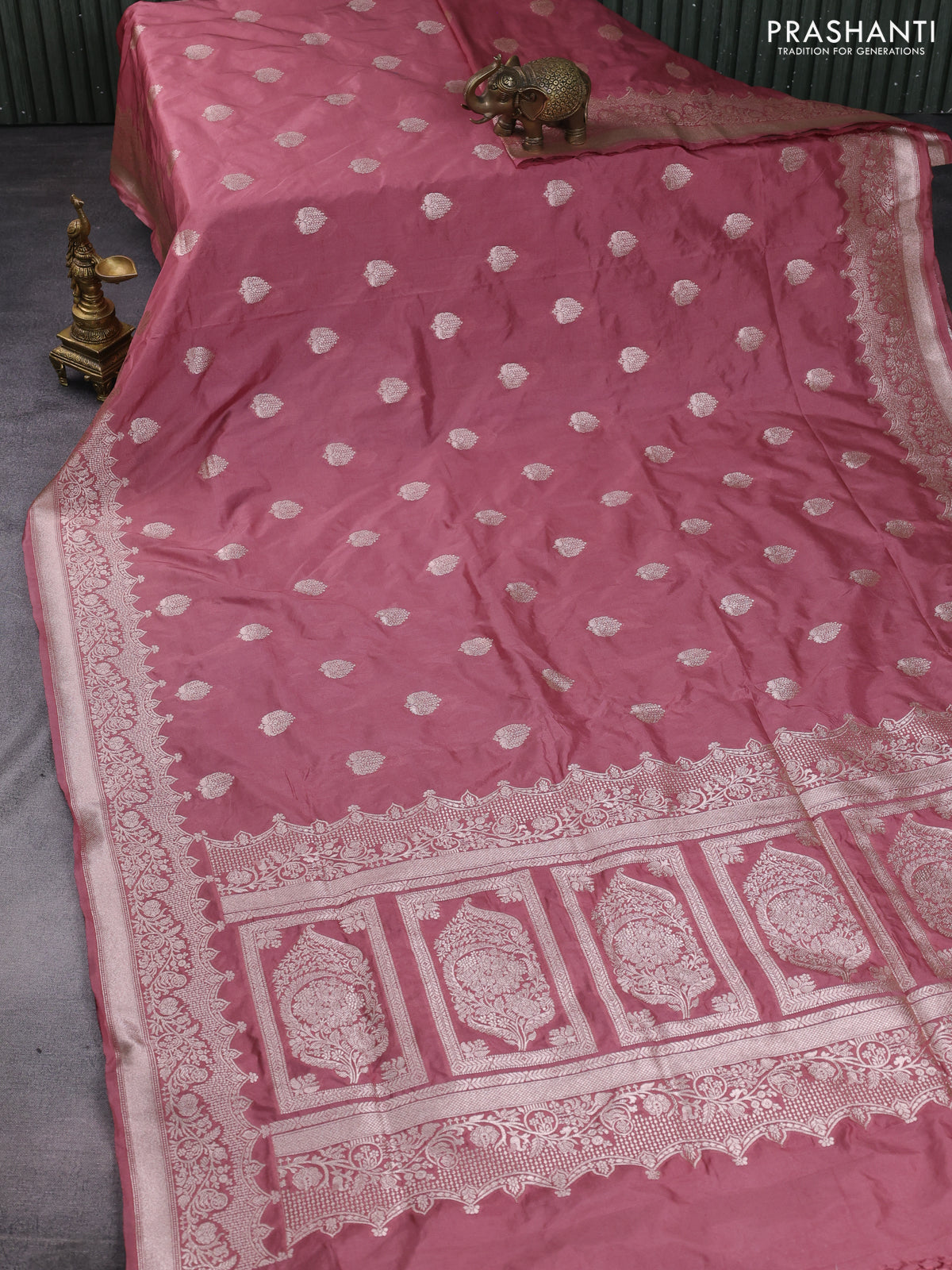 Banarasi semi katan saree pastel maroon with zari woven buttas and zari woven border