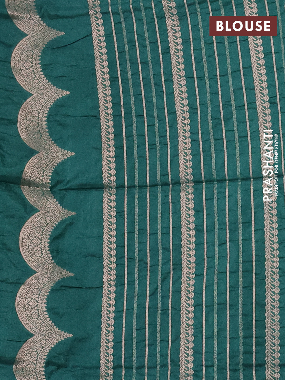 Banarasi semi katan saree teal green shade with allover zari checks and zari woven border
