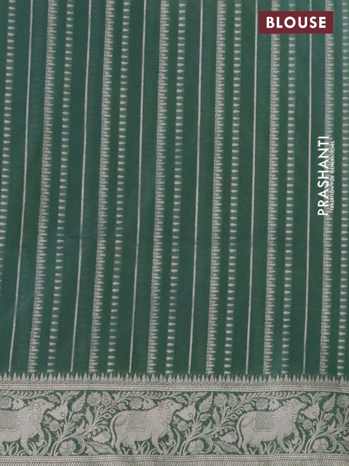 Banarasi semi katan silk saree dual shade of teal bluish green with allover silver & gold zari weaves and zari woven border