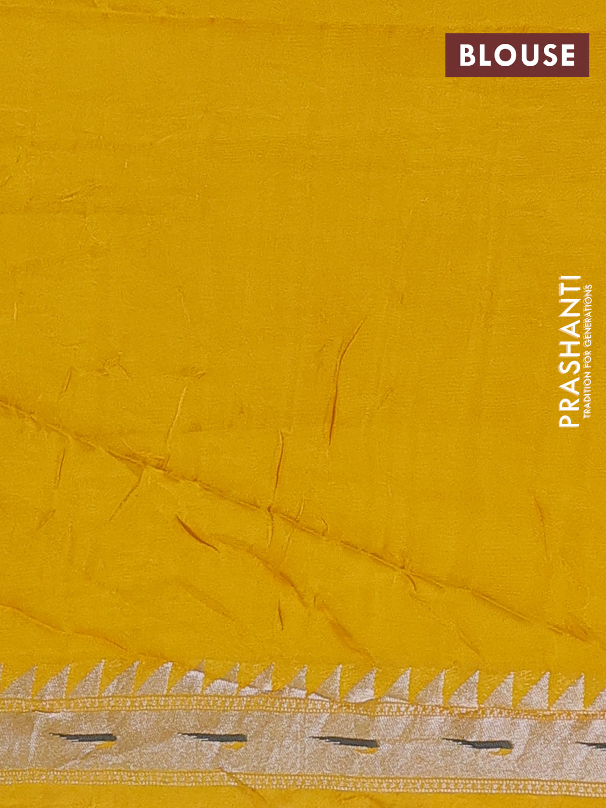 Banarasi semi raw silk saree yellow with allover zari woven brocade weaves and floral design paithani border