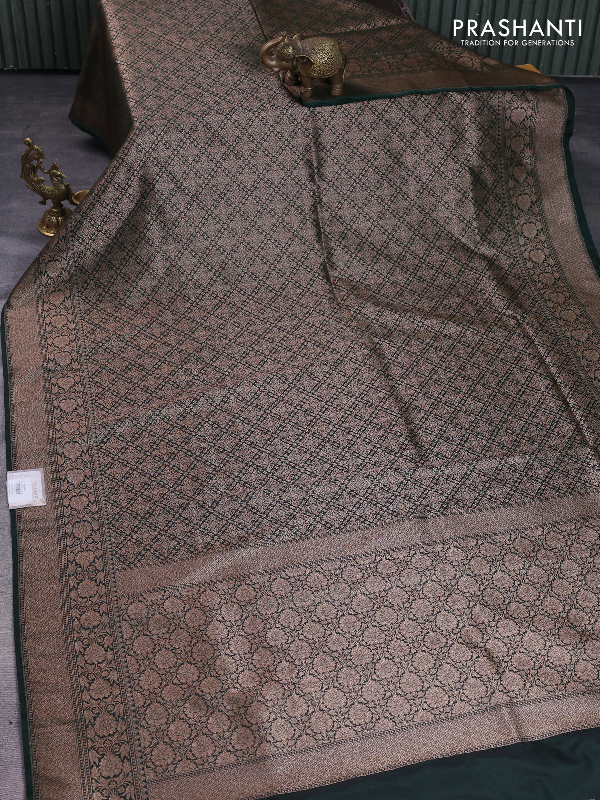 Banarasi semi silk saree dark green with allover thread & zari weaves and woven border