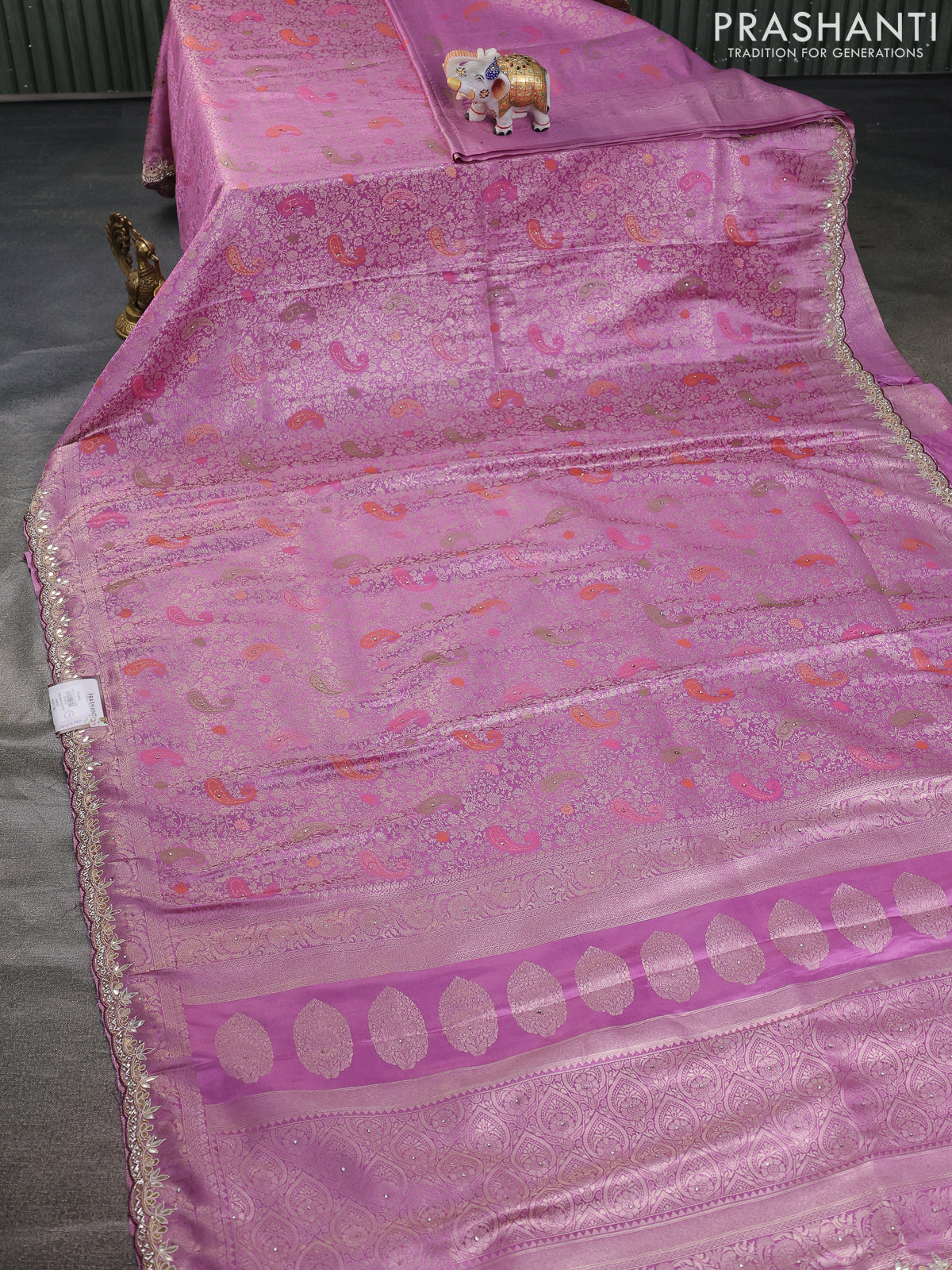 Banarasi silk saree lavender with allover zari woven brocade weaves and zaridosi gotapatti work border
