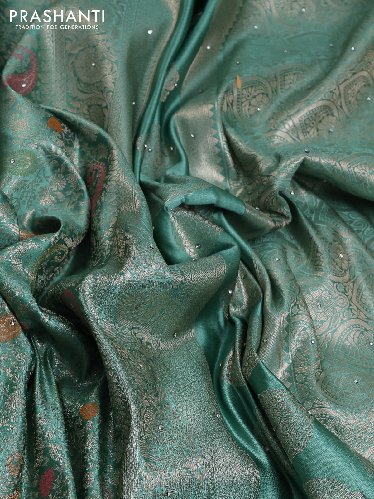 Banarasi silk saree pastel green with allover zari woven brocade weaves and zaridosi gotapatti work border