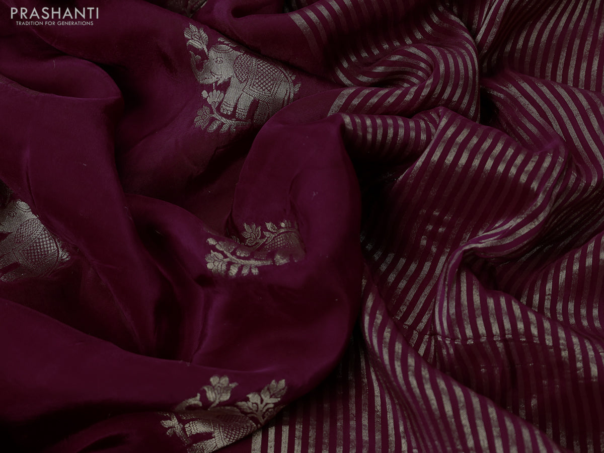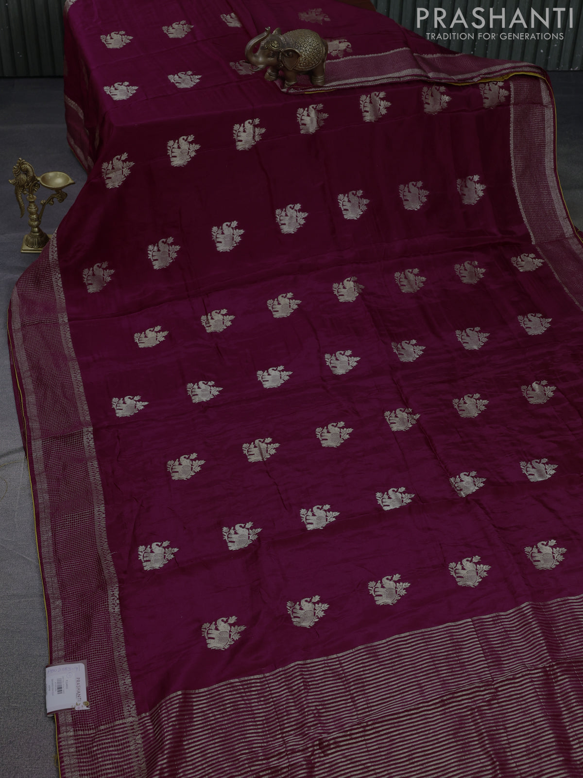 Banarasi silk saree wine shade and mustard yellow with zari woven elephant buttas and zari woven border