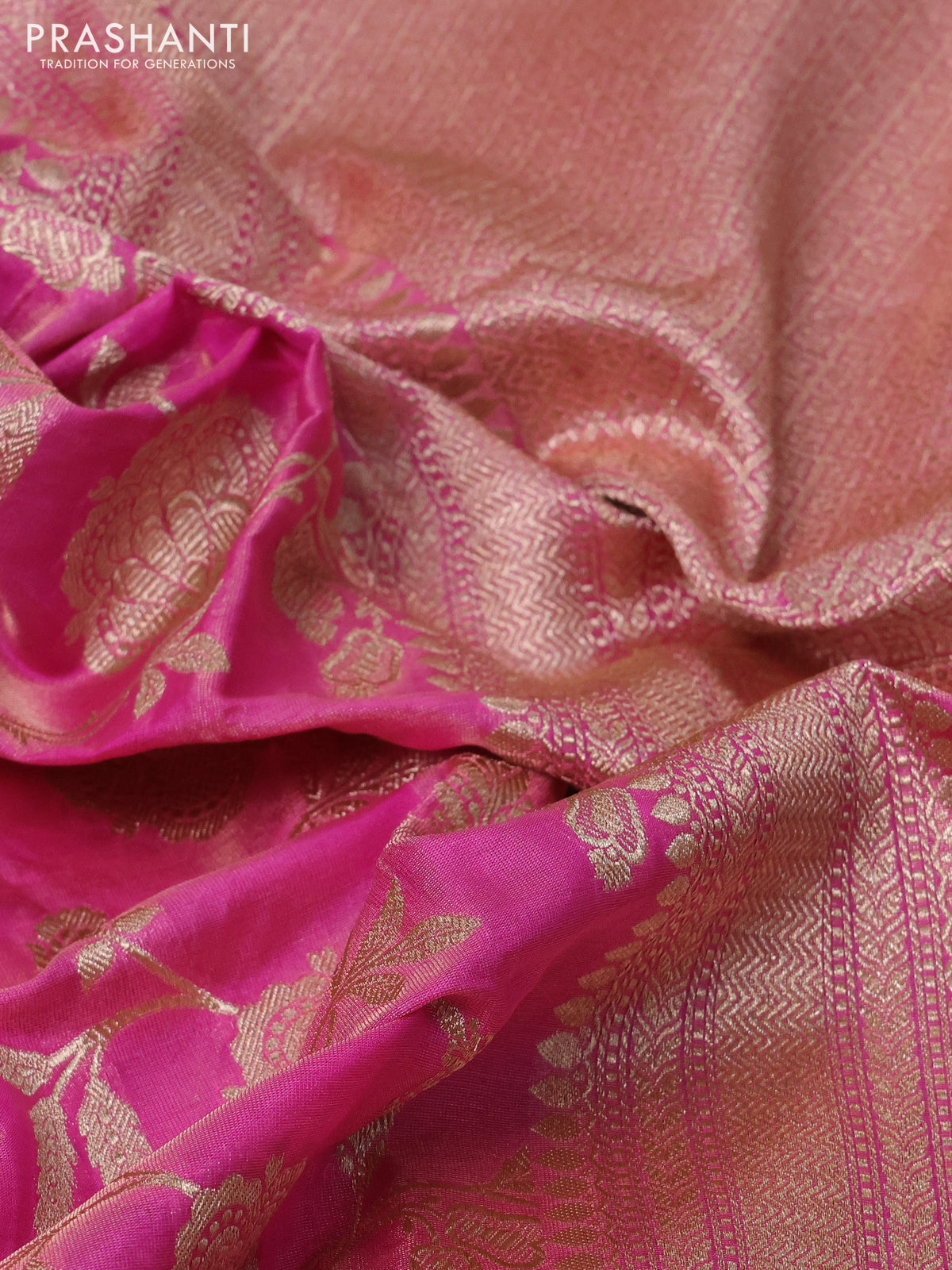 Banarasi tissue silk saree pink with allover zari woven brocade weaves and zari woven border