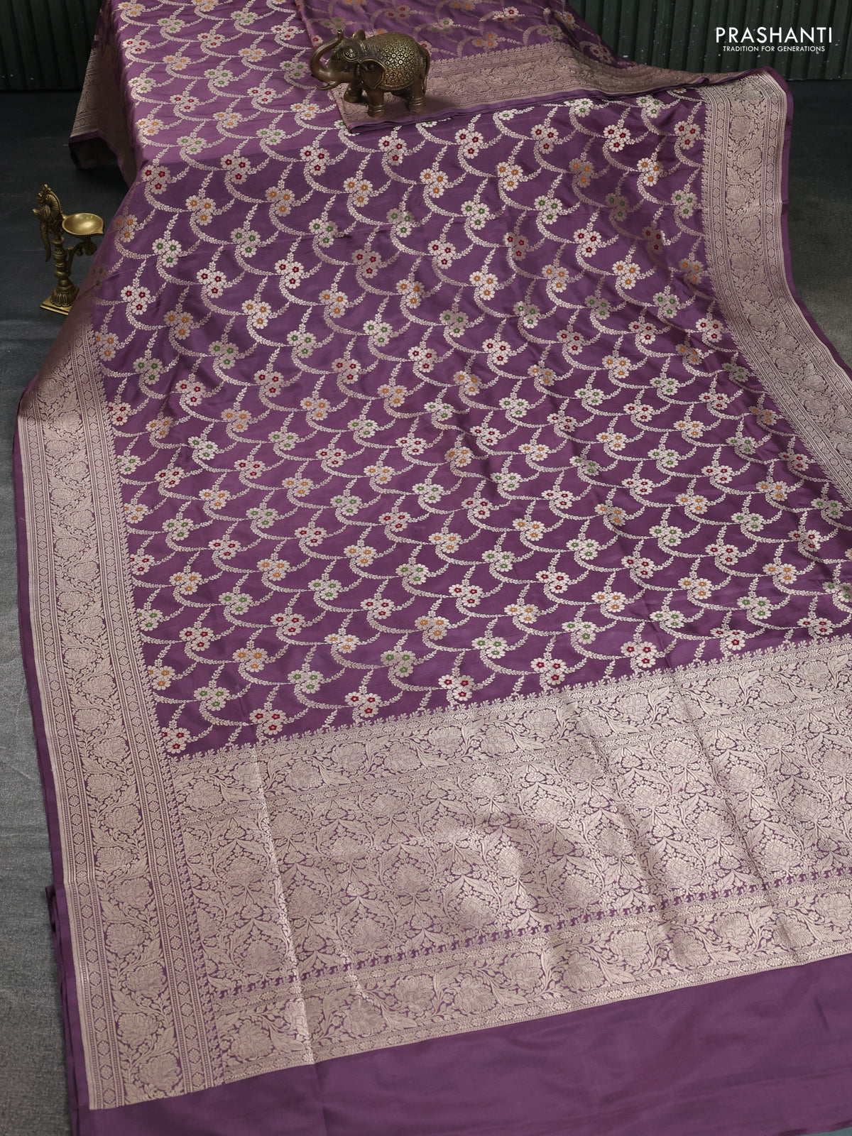 Banarasi uppada silk saree pastel lavender with allover zari woven brocade weaves and zari woven border