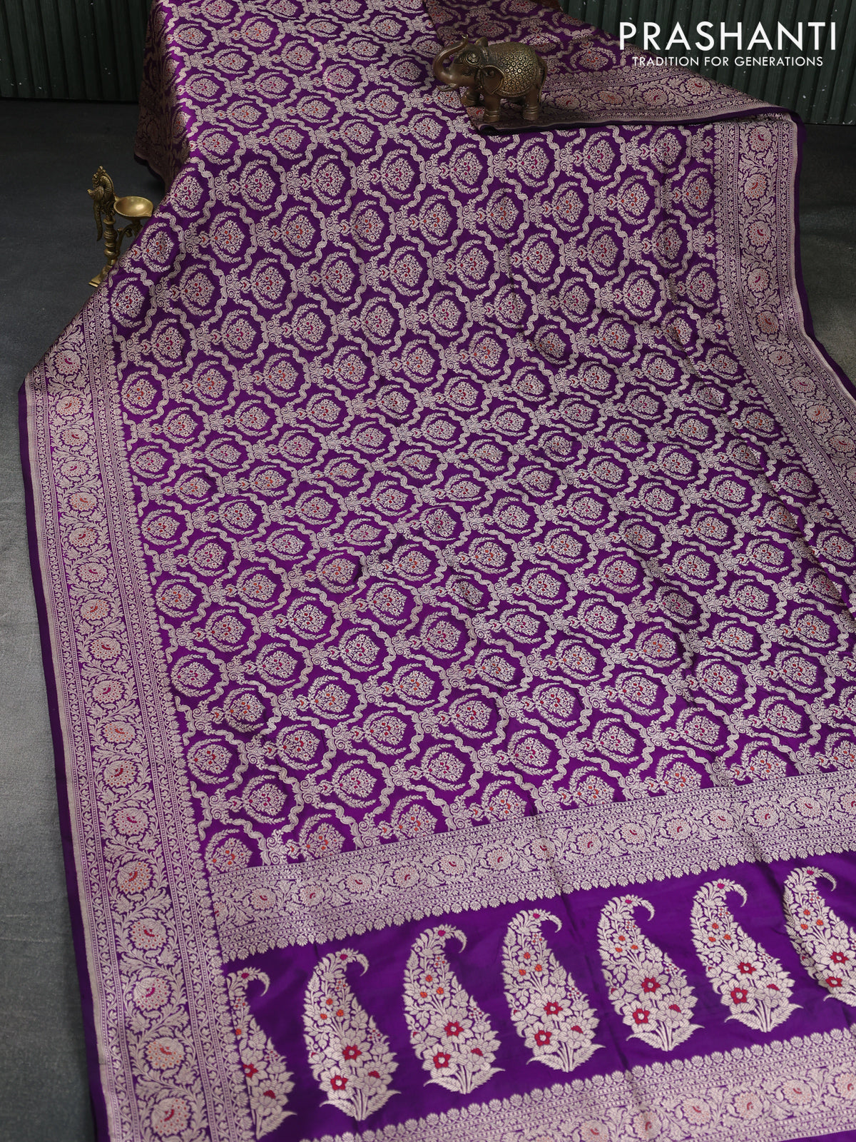 Banarasi uppada silk saree purple with allover zari woven brocade weaves and zari woven border