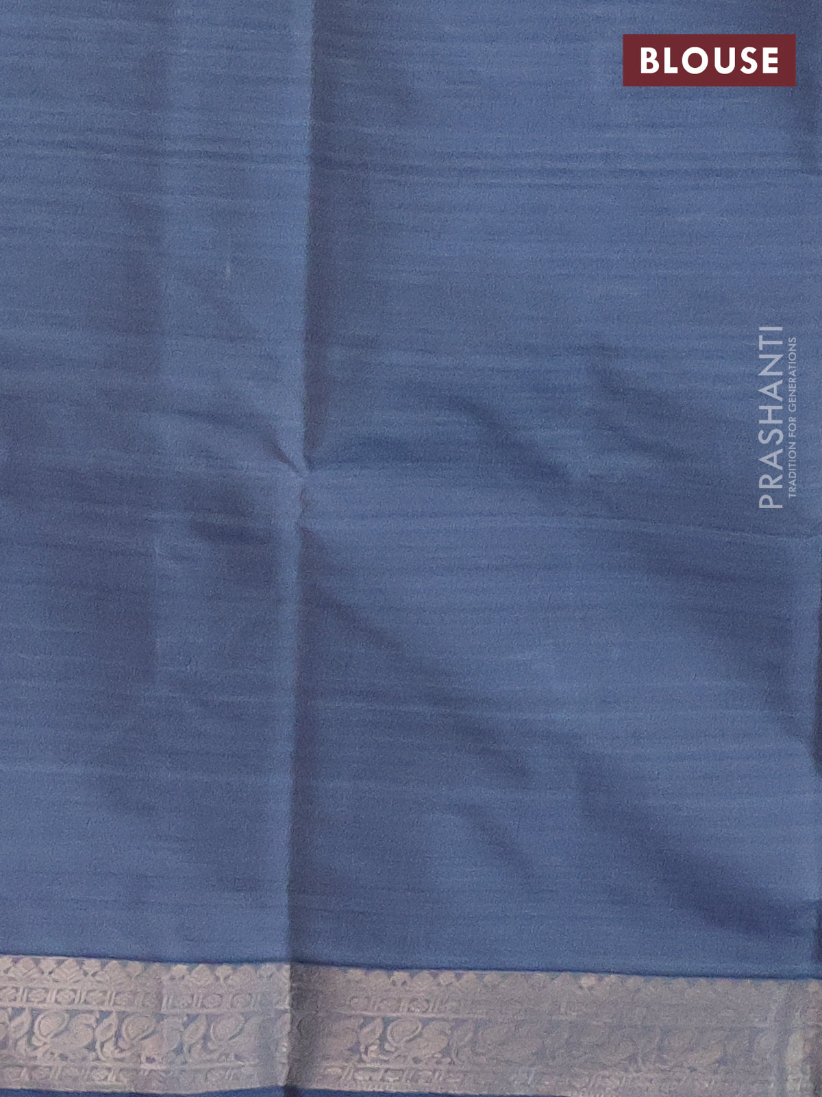Bangalori semi silk saree off white and blue with allover ikat weaves and zari woven border