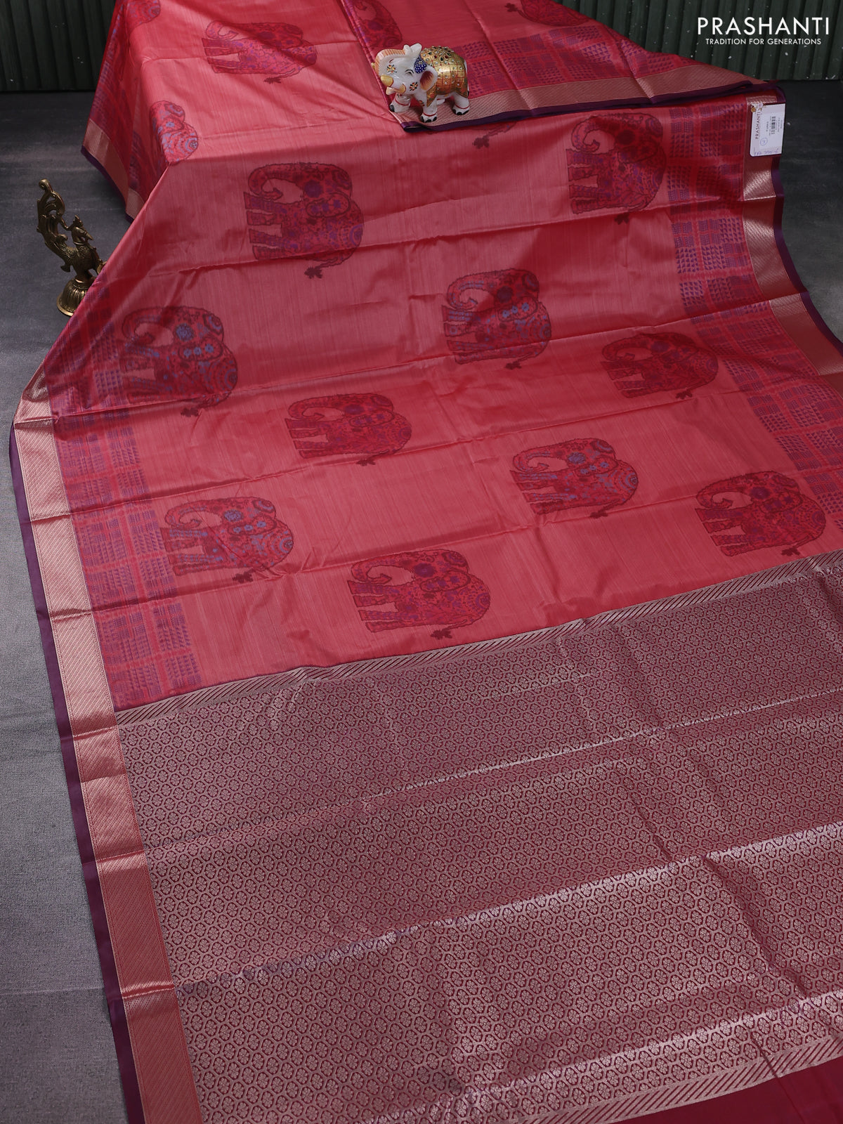 Bangalori semi silk saree red and wine shade with allover elephant ikat butta weaves and zari woven border