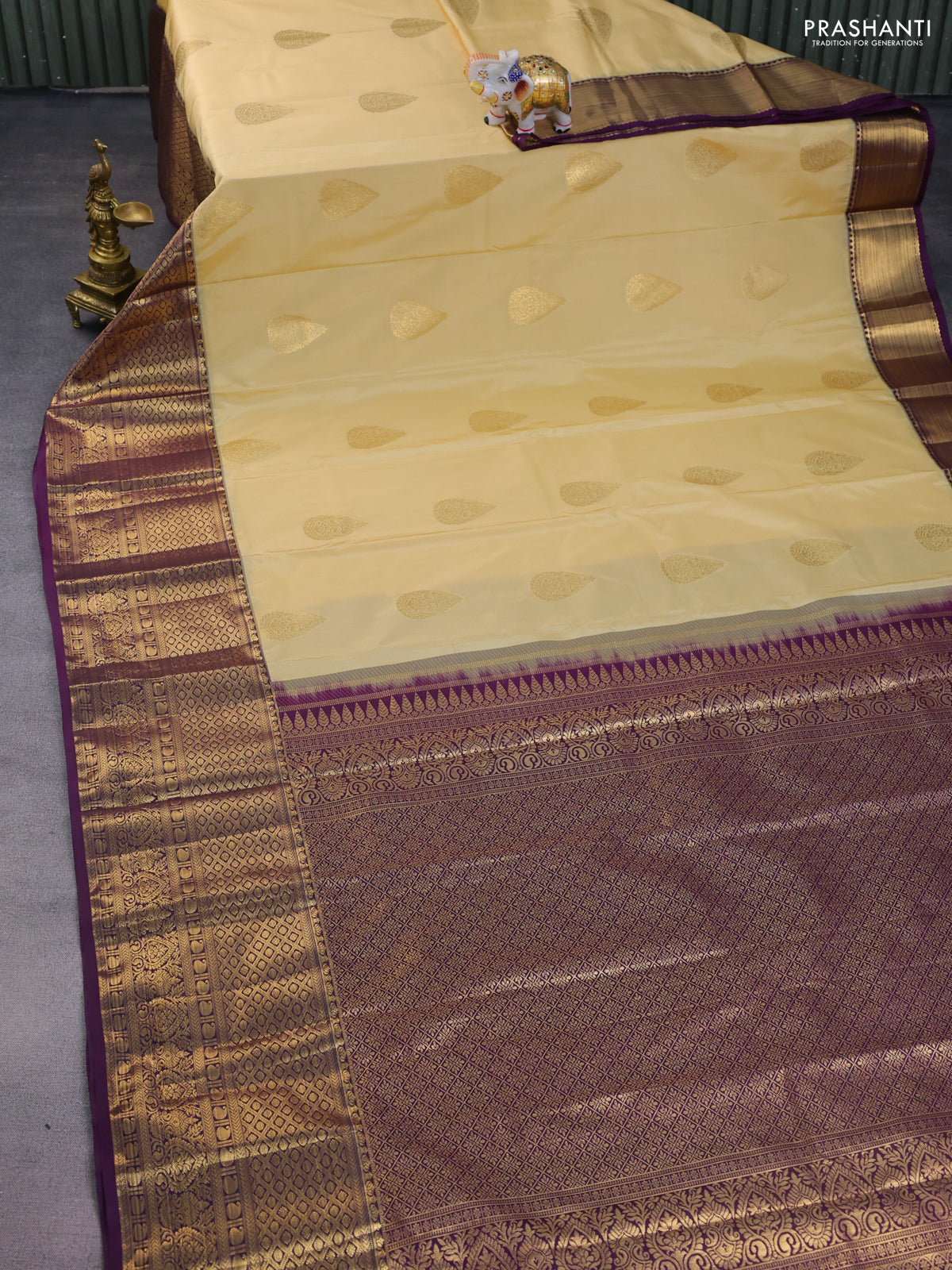 Bangalori silk saree sandal and deep violet with zari woven buttas and long zari woven border
