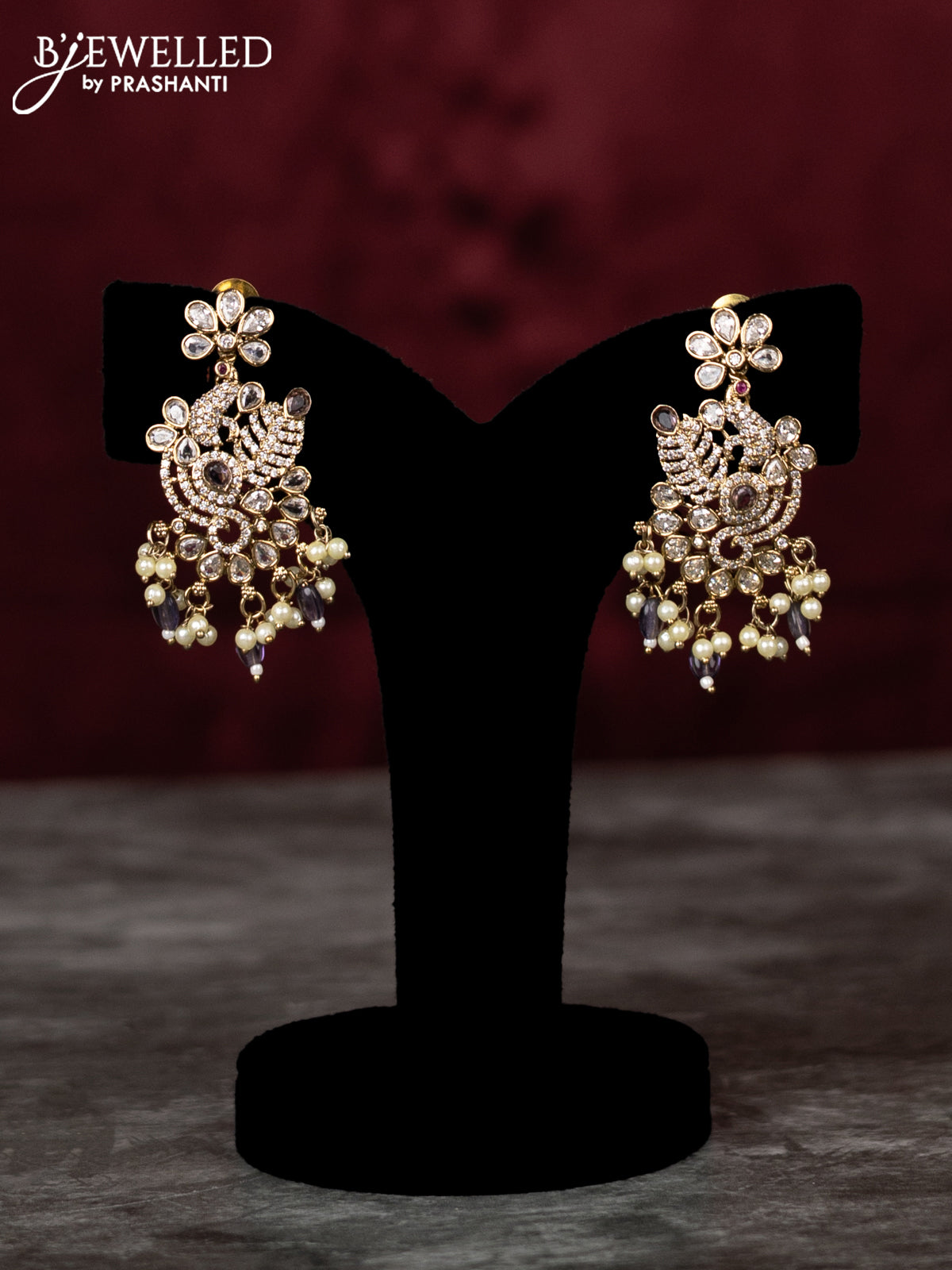 Beaded double layer violet necklace with cz stones and pearl & beads hangings in victorian finish