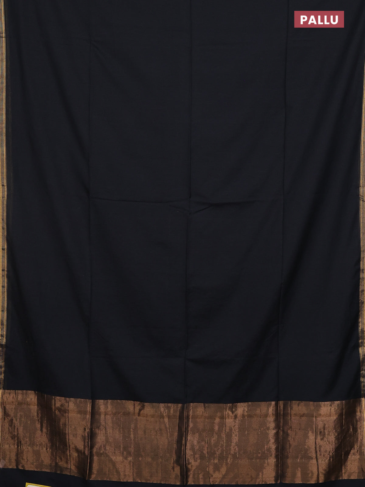 Bengal soft cotton saree black and green with plain body and zari woven border