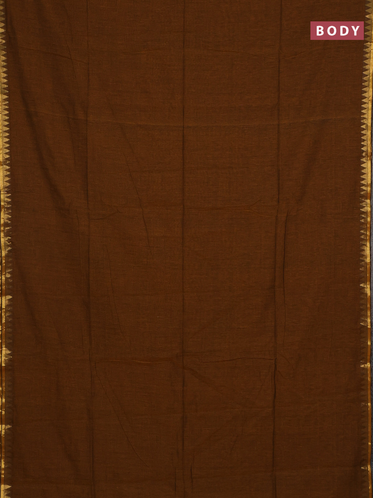 Bengal soft cotton saree dark mustard and blue with plain body and zari woven border