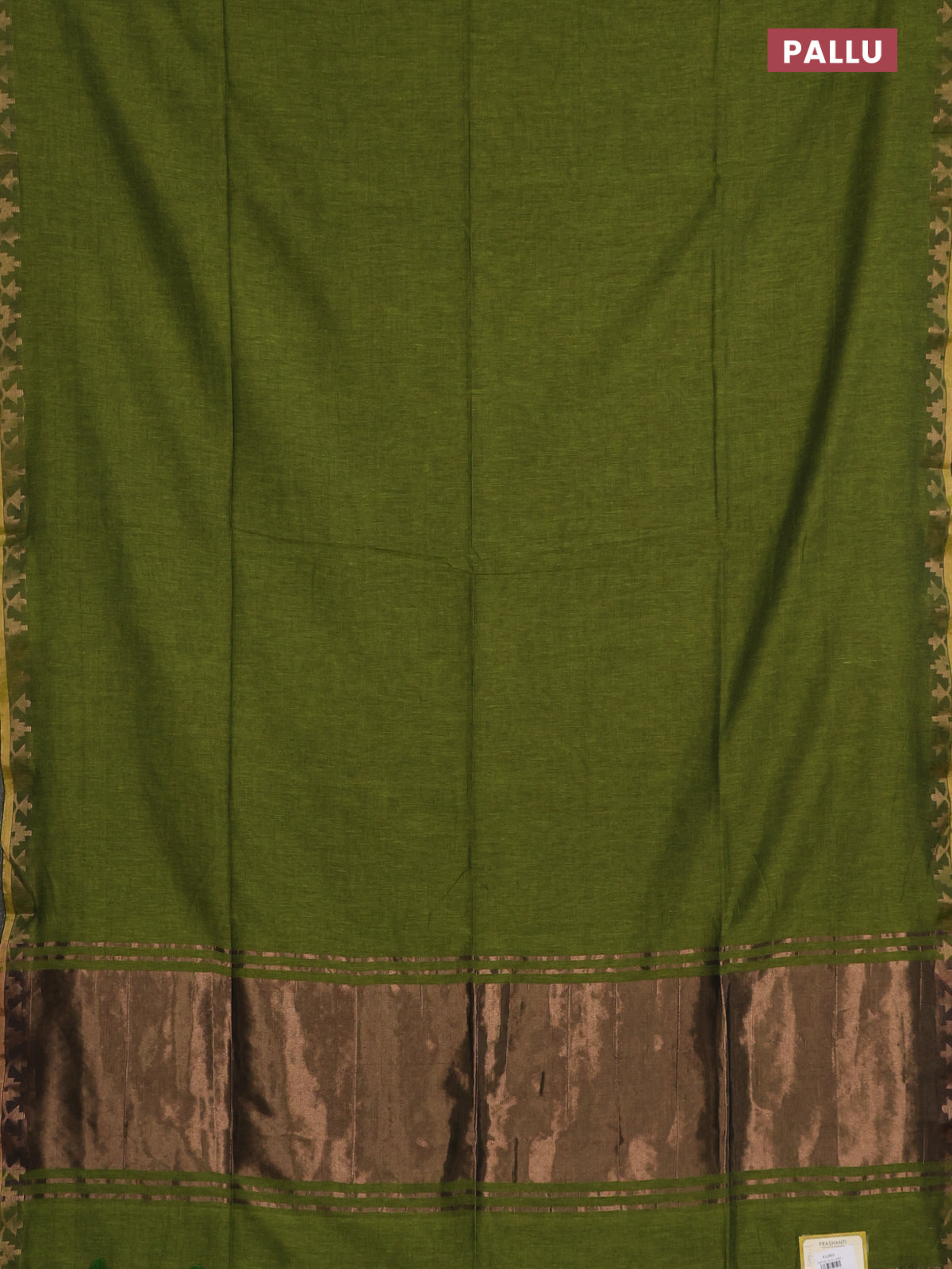 Bengal soft cotton saree green and blue with plain body and zari woven border