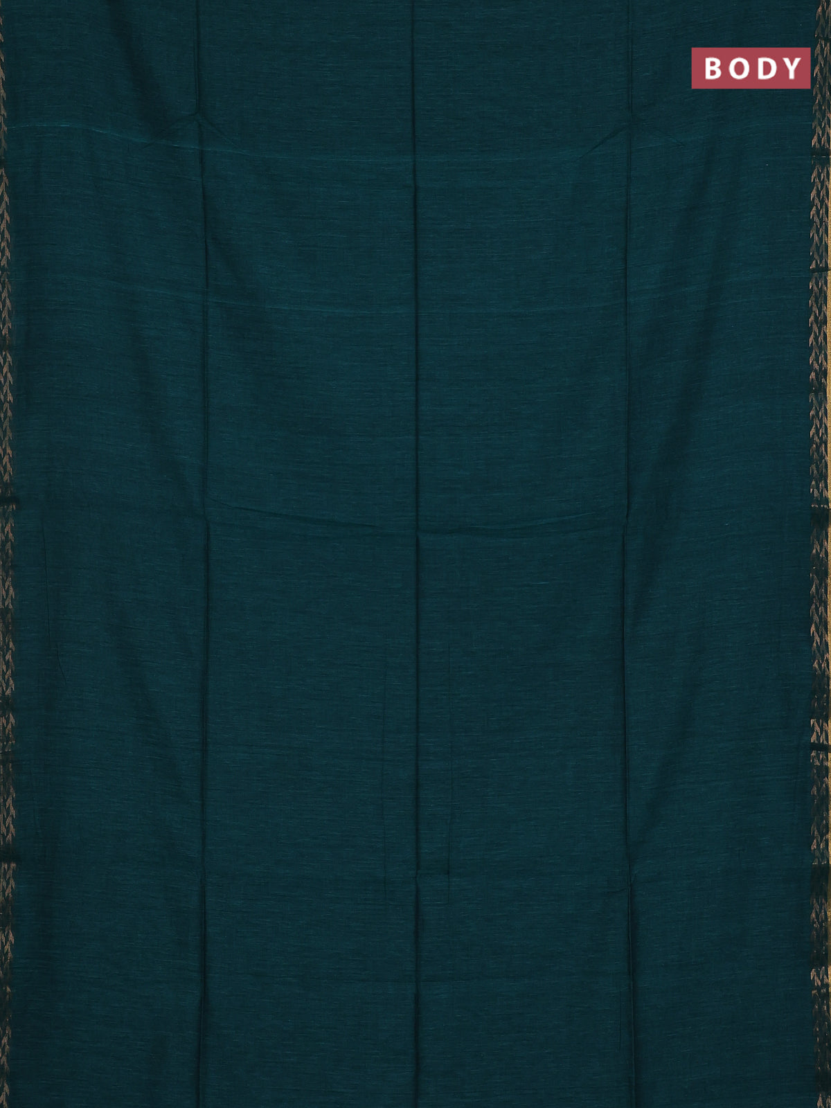 Bengal soft cotton saree teal green and mustard yellow with plain body and zari woven border